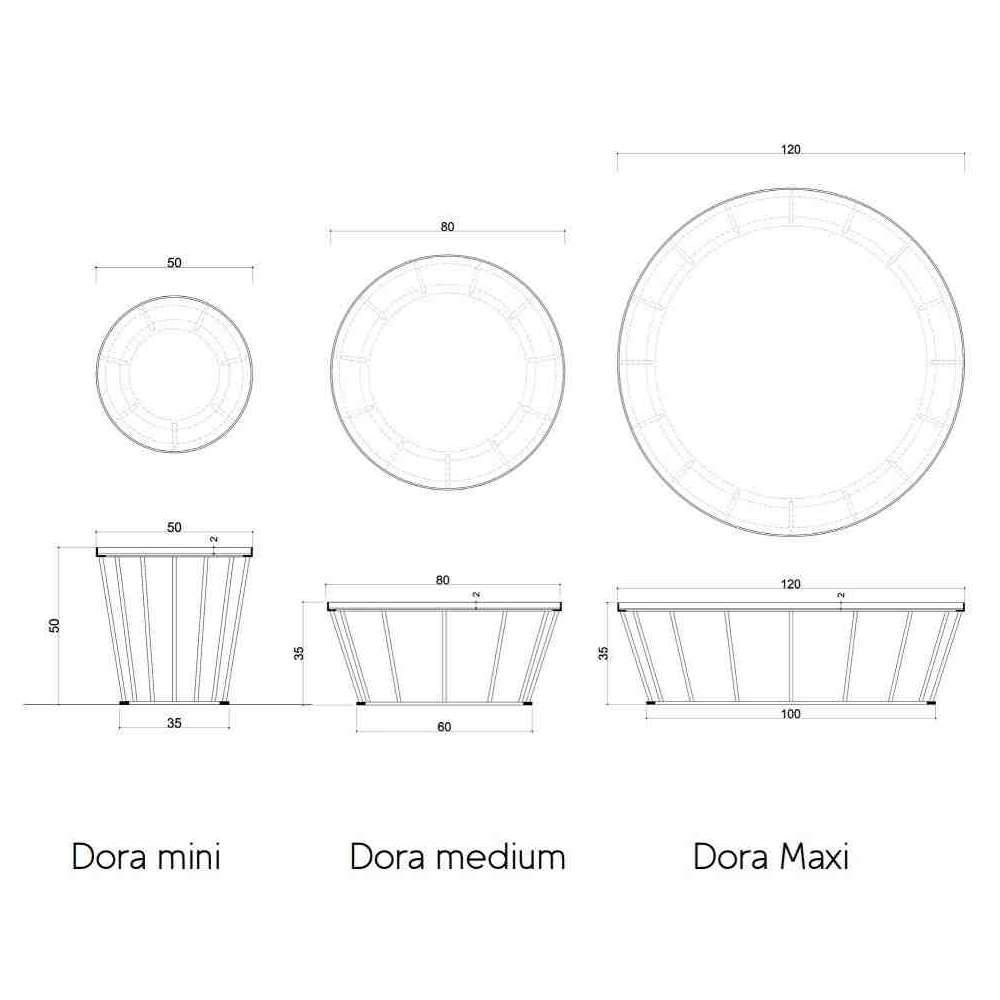 Dora to kolekcja stolików kawowych składająca się z trzech modeli. Każdy charakteryzuje się mosiężną podstawą i blatem z marmuru lub kamienia półszlachetnego, o różnej wysokości, średnicy i wybranych materiałach.