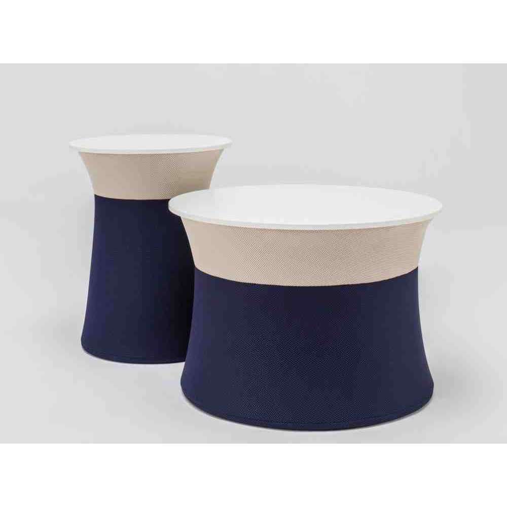 Niski okrągły stolik kawowy z tkaniny do salonu MDD Mesh