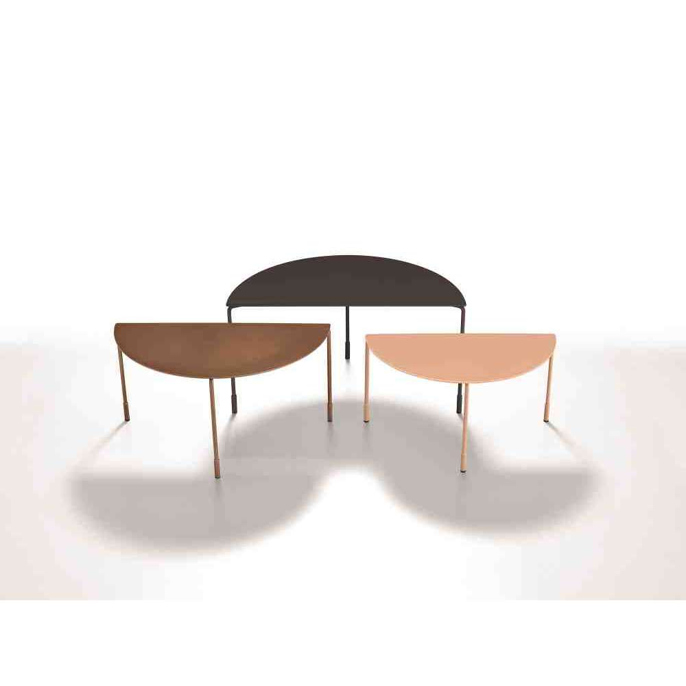Hoodi stolik kawowy z metalowymi lakierowanymi nogami. Blat dostępny w wersji metalowej lub tapicerowanej w skórze.
