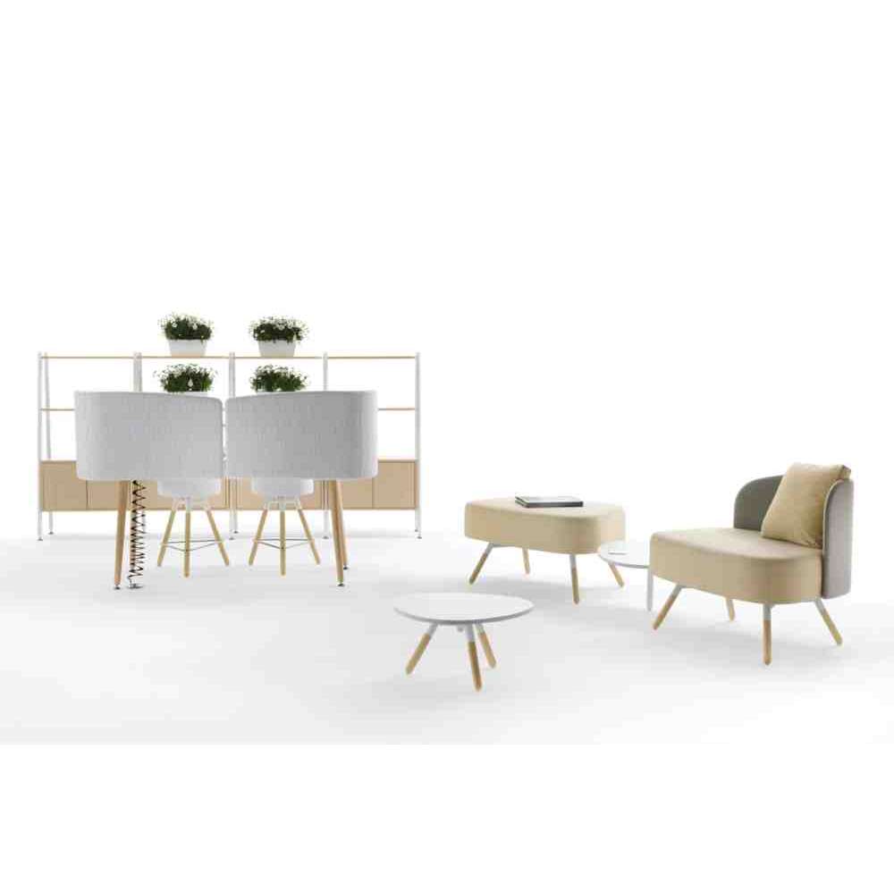 Duża rodzina siedzisk, biurek, stolików i parawanów, do stref przerw, nieformalnych miejsc, w których ludzie mogą swobodnie pracować w zespole, salach wykładowych, muzeach itp. Każdy element został pomyślany tak, aby był trwały, do zatłoczonych miejsc. Rama nośna każdego elementu jest metalowa (okrągły profil stalowy Ø 35 x 2,5 mm) sugerowana w kilku wykończeniach.