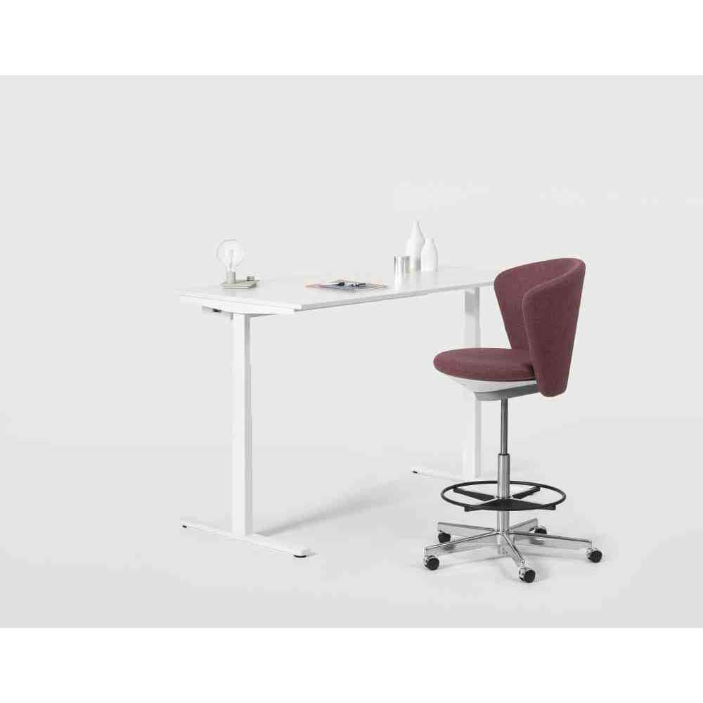 Ergonomiczne siedzenie na wysokości stojącej wspomagane jest przez intuicyjną regulację wysokości oraz automatyczną regulację przeciwciśnienia do masy ciała użytkownika. Dodatkowe elementy zaprojektowane z myślą o komforcie obejmują tapicerkę siedziska i oparcia z formowanej pianki pokrytej tkaniną/skórą oraz pięcioramienną podstawę. Obudowa mechaniki w opcjonalnym wykończeniu w kolorze złamanej bieli lub ciemnoszarym.