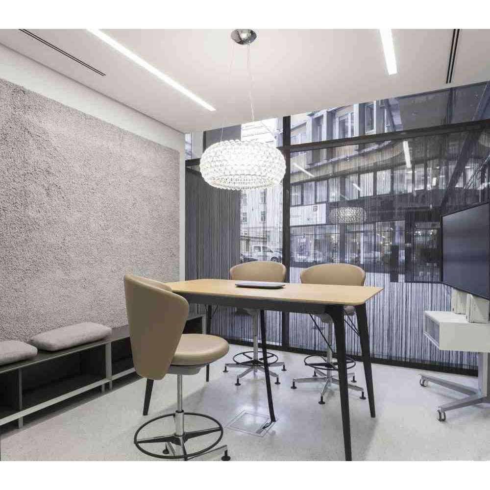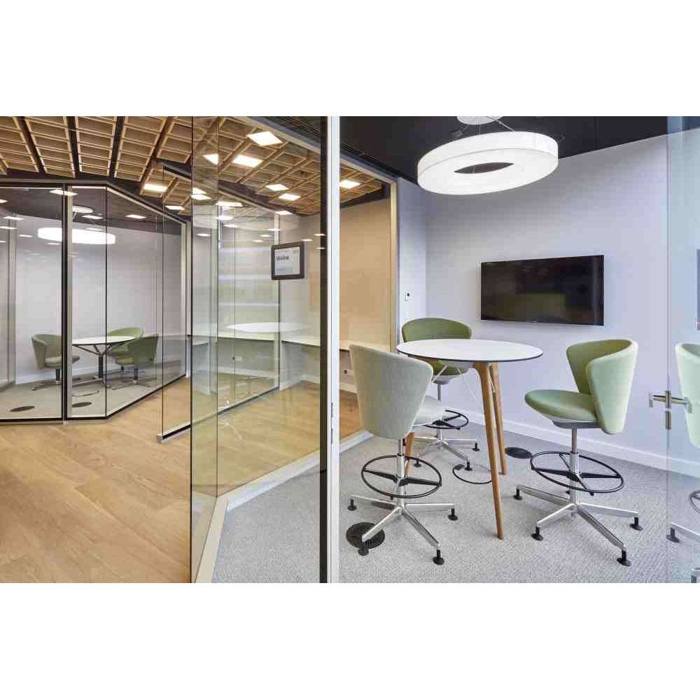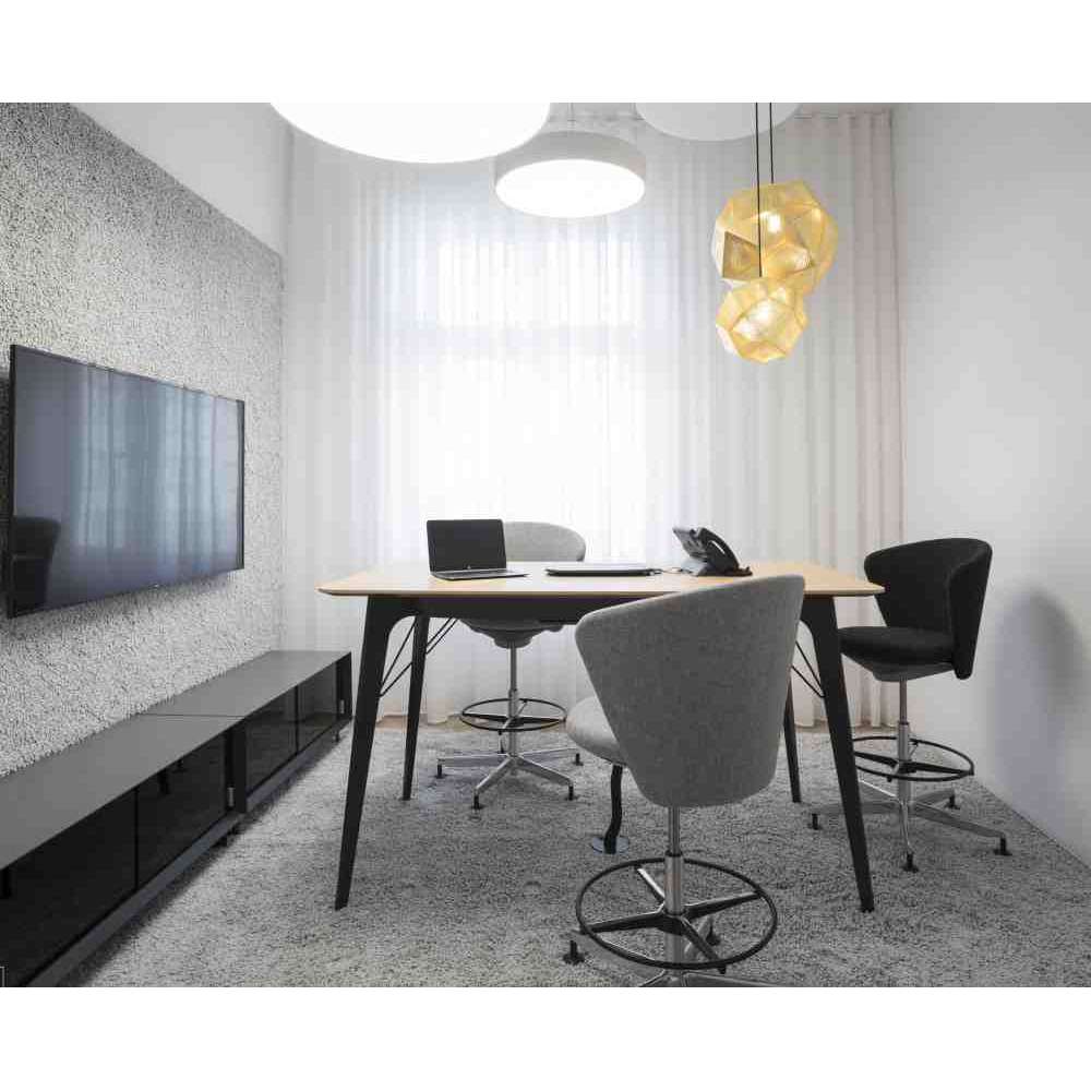 Nowa typologia krzeseł do współczesnych biur. Do pracy zespołowej, spotkań i wspólnych spotkań przy wysokości stołu 113 cm. Projekt jest emocjonalny i charakteryzuje się organicznymi, płynnymi liniami: delikatna stylistyka z ludzkim dotykiem. Stworzony jako kontrapunkt dla sztywnych, geometrycznych form panujących w biurze. Krzesło o wysokim poziomie komfortu siedzenia, z dużym wyborem zachęcających miejsc siedzących.