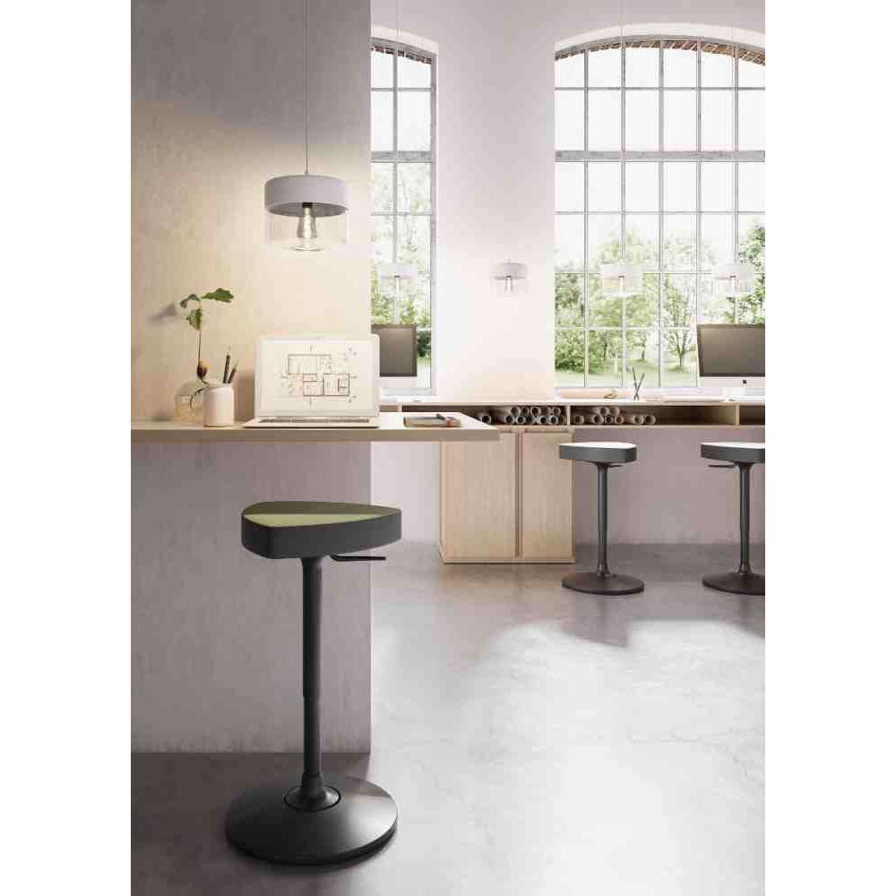 Obrotowy stołek z regulacją wysokości, z siedziskiem w kształcie trójkąta