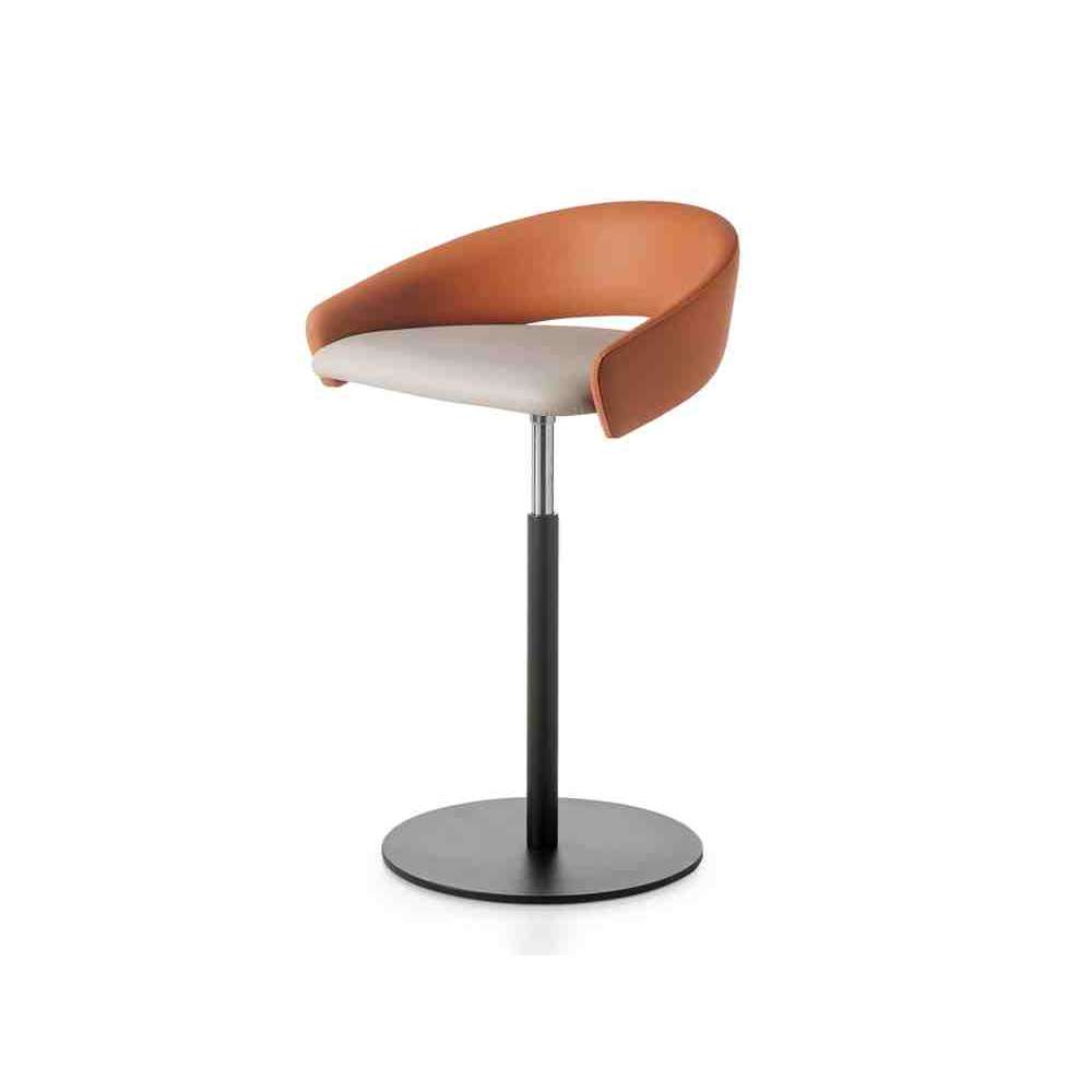 Dostępne w różnych wersjach: jedno lub dwukolorowe, ze stałą pochyłą ramą sań, lekką i charakterystyczną jako znak graficzny lub z obrotową podstawą z podnośnikiem gazowym, dynamiczną i wszechstronną, z podnóżkiem lub bez. Obie ramy mają trzy różne wykończenia - pomalowane na biało, pomalowane na czarno lub chromowane - co pozwala temu stołkowi wyrazić siebie z ekstremalną personalizacją, również dzięki szerokiemu wyborowi dostępnych powłok.