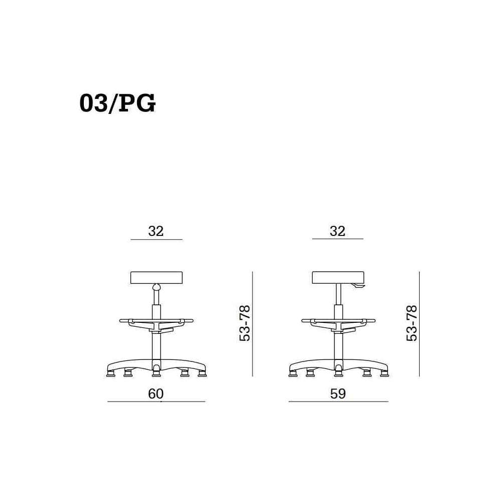 Rama: 4 nogi, malowana na czarno stalowa rura ze stałym siedziskiem lub siedziskiem z regulacją wysokości.