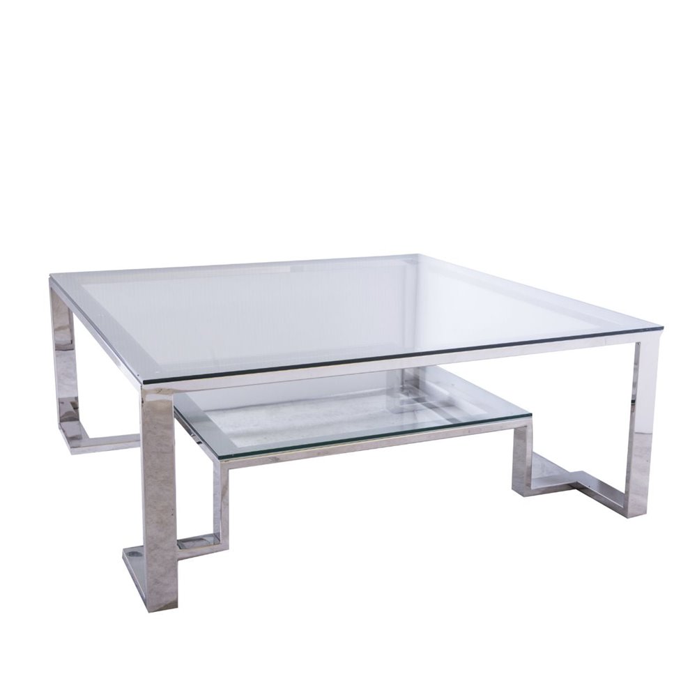 Roberto elegancki srebrny stolik kawowy z dwoma szklanymi blatami 120/120/40 cm