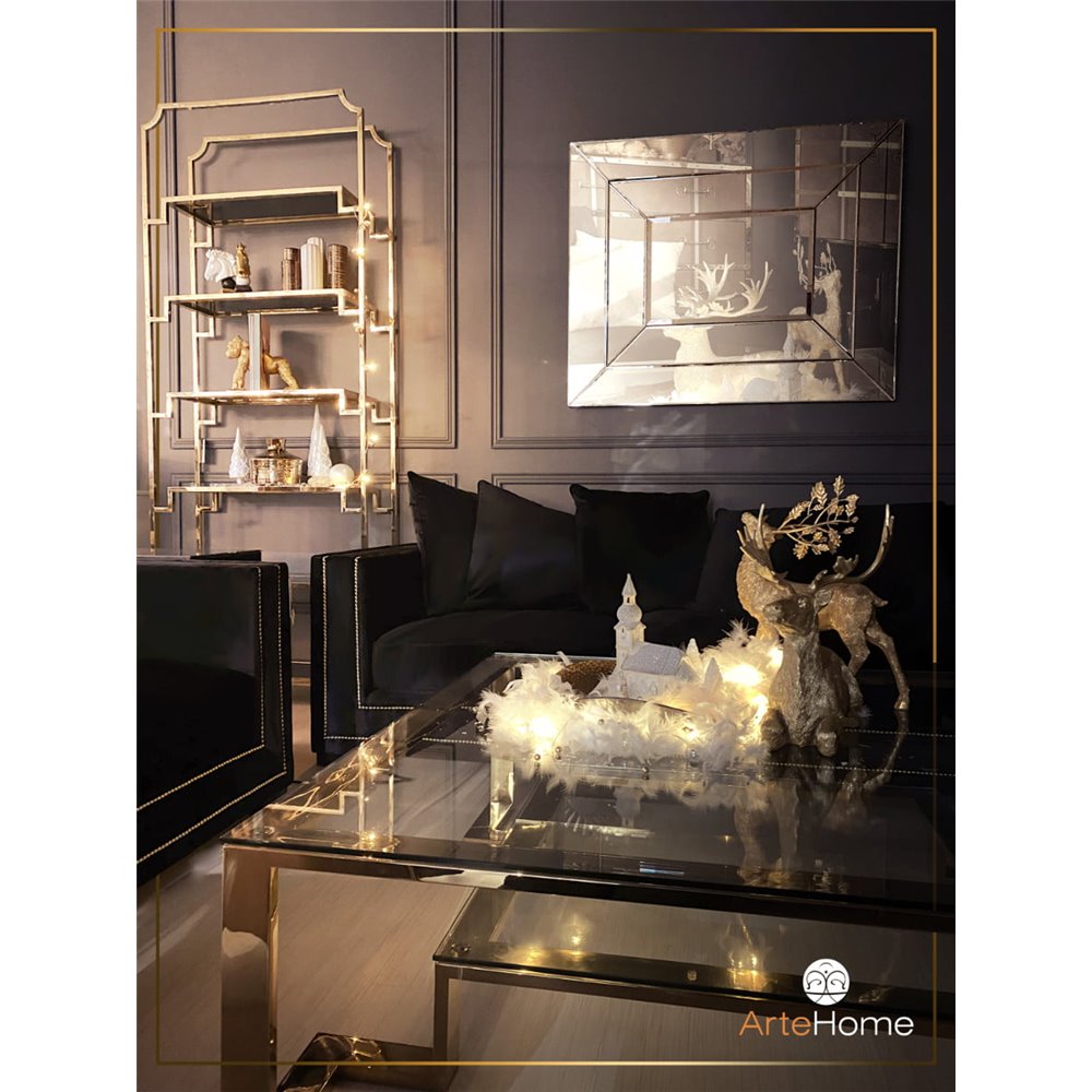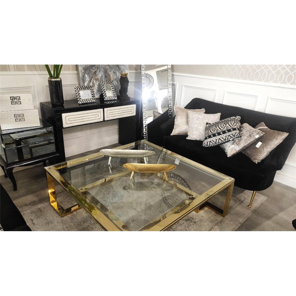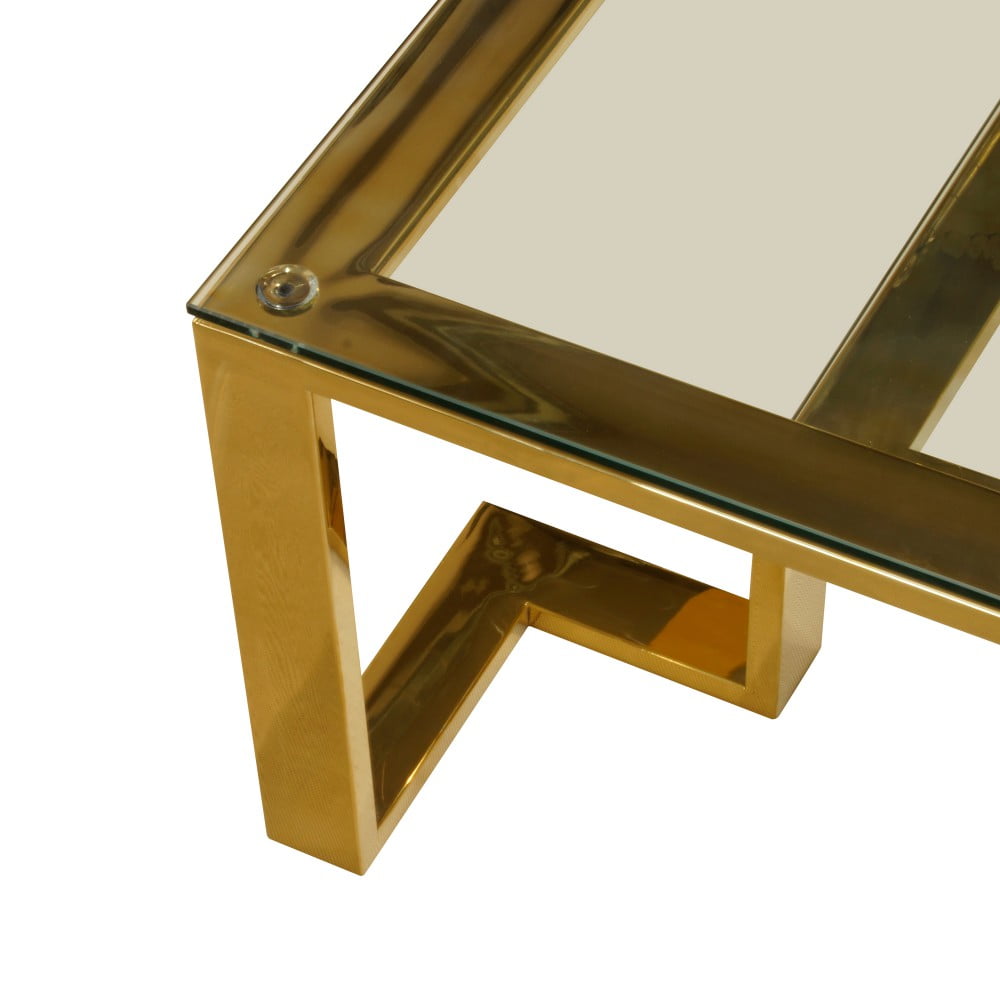 Roberto elegancki złoty stolik kawowy z dwoma szklanymi blatami 120/120/40 cm