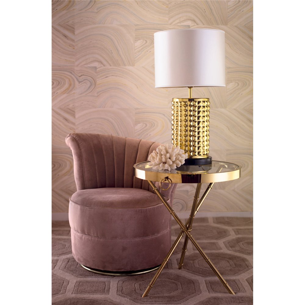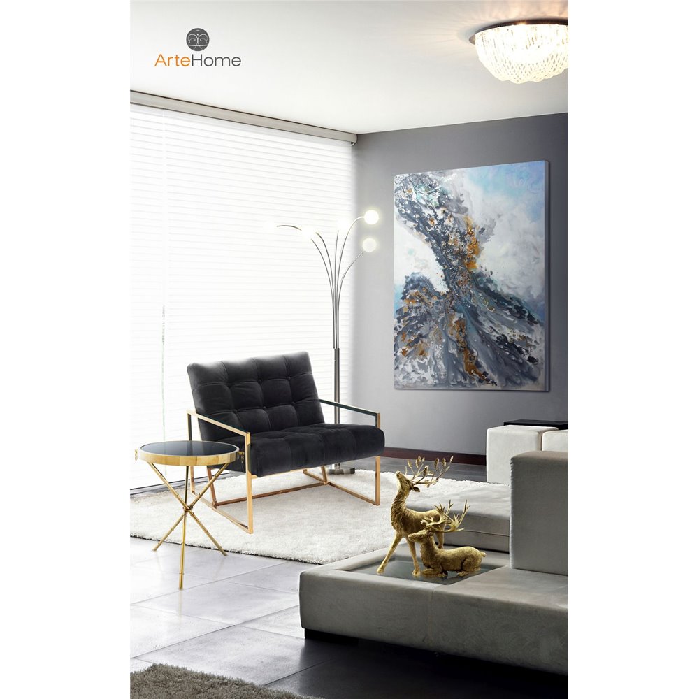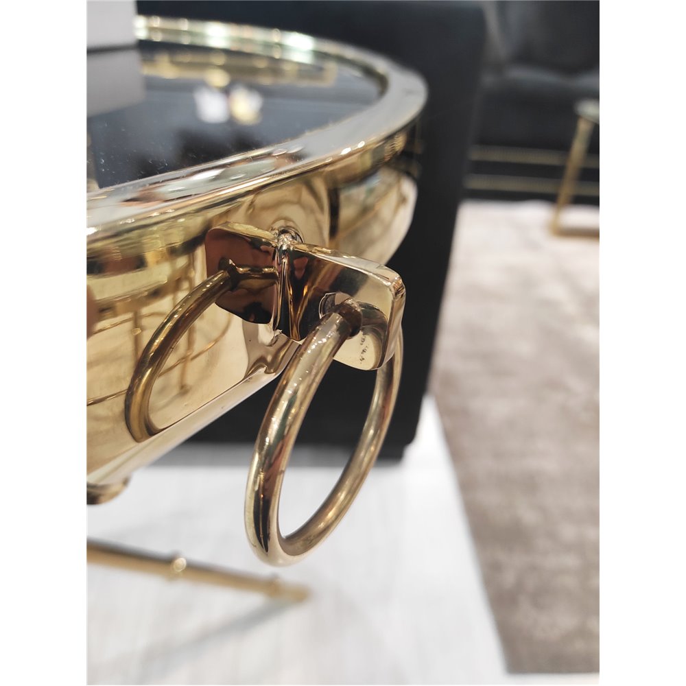 Stolik kawowy ze szklanym ciemnym blatem i ozdobnymi kołatkami złoty Musa 60/60/52 cm