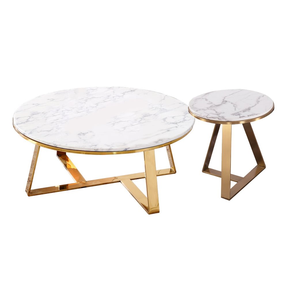 Zestaw stolików kawowych Ø100/40 Ø50/55 cm wyjątkowe złoto-białe stoliki Yeres