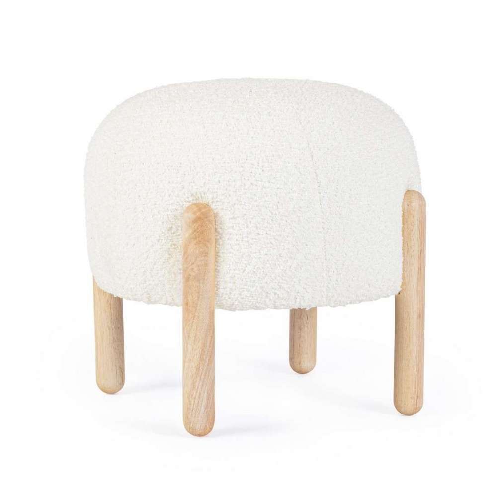 BIZZOTTO stołek DAYLA biały. Przytulny stołek, który łączy w sobie zgrabną sylwetkę i wyjątkowy design. Podstawa wykonana z drewna kauczukowego zapewnia stabilność i trwałość, a jednocześnie wprowadza do wnętrza naturalny, ciepły akcent. Siedzisko pokryte tkaniną z efektem bouclé łączy funkcjonalność i estetykę, oferując charakterystyczną pętelkową fakturę, która jest przyjemna w dotyku. Wypełnienie pianką poliuretanową zapewnia doskonałą wygodę i trwałość, idealnie dopasowując się do kształtu ciała, a jednocześnie utrzymując swoją formę przez długi czas. Idealnie nadaje się jako dodatkowe siedzisko, podnóżek lub subtelny akcent dekoracyjny w nowoczesnych i minimalistycznych wnętrzach. Dayla to stołek o wyjątkowym kształcie, który doda charakteru każdemu wnętrzu – idealny dla tych, którzy szukają niebanalnych rozwiązań. Wymiary: wys. 38 cm / szer. 45 cm Waga brutto: 3,5 kg.