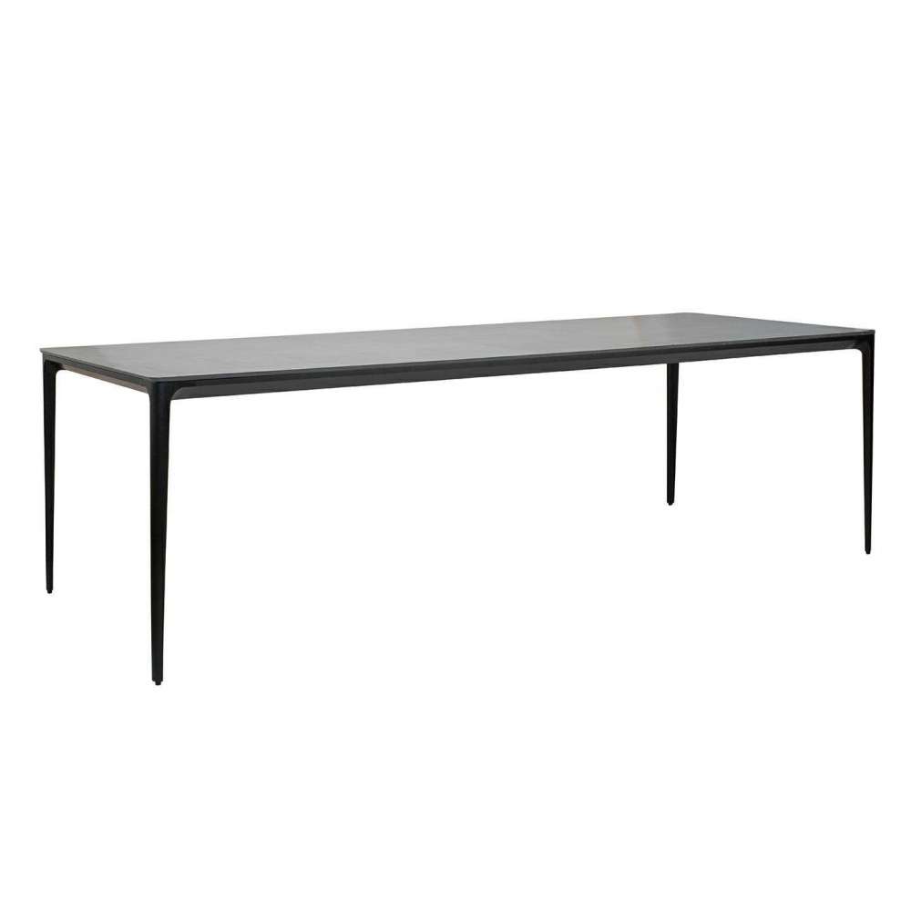 Stół SLIM 240x100 czarny - ceramiczny marmur, aluminium. Połączenie nowoczesnej estetyki z ponadczasową klasą. Aluminiowa podstawa w kolorze głębokiej czerni nadaje całości lekkości oraz wyrazistego charakteru. Blat wykonany z ceramiki, inspirowany czarnym marmurem, urzeka subtelnym wzorem i eleganckim wykończeniem, wiernie odwzorowując naturalne piękno kamienia. Ceramiczna powierzchnia zachowuje wygląd marmuru, a przy tym jest bardziej odporna na uszkodzenia i wysoką temperaturę, co czyni ją praktycznym wyborem na lata. Doskonale odnajdzie się w kuchni, jadalni lub salonie, wprowadzając do wnętrza harmonię. Idealnie współgra z aranżacjami nowoczesnymi, minimalistycznymi oraz loftowymi, podkreślając ich wyjątkowy charakter. Poznaj pełną kolekcję Slim i wybierz model, który najlepiej odzwierciedli styl Twojego domu. Wymiary: wys. 73,5 cm / szer. 240 cm / gł. 100 cm Blat: wys. 1,5 cm / szer. 240 cm / gł. 100 cm Sposób wysyłki: paleta.