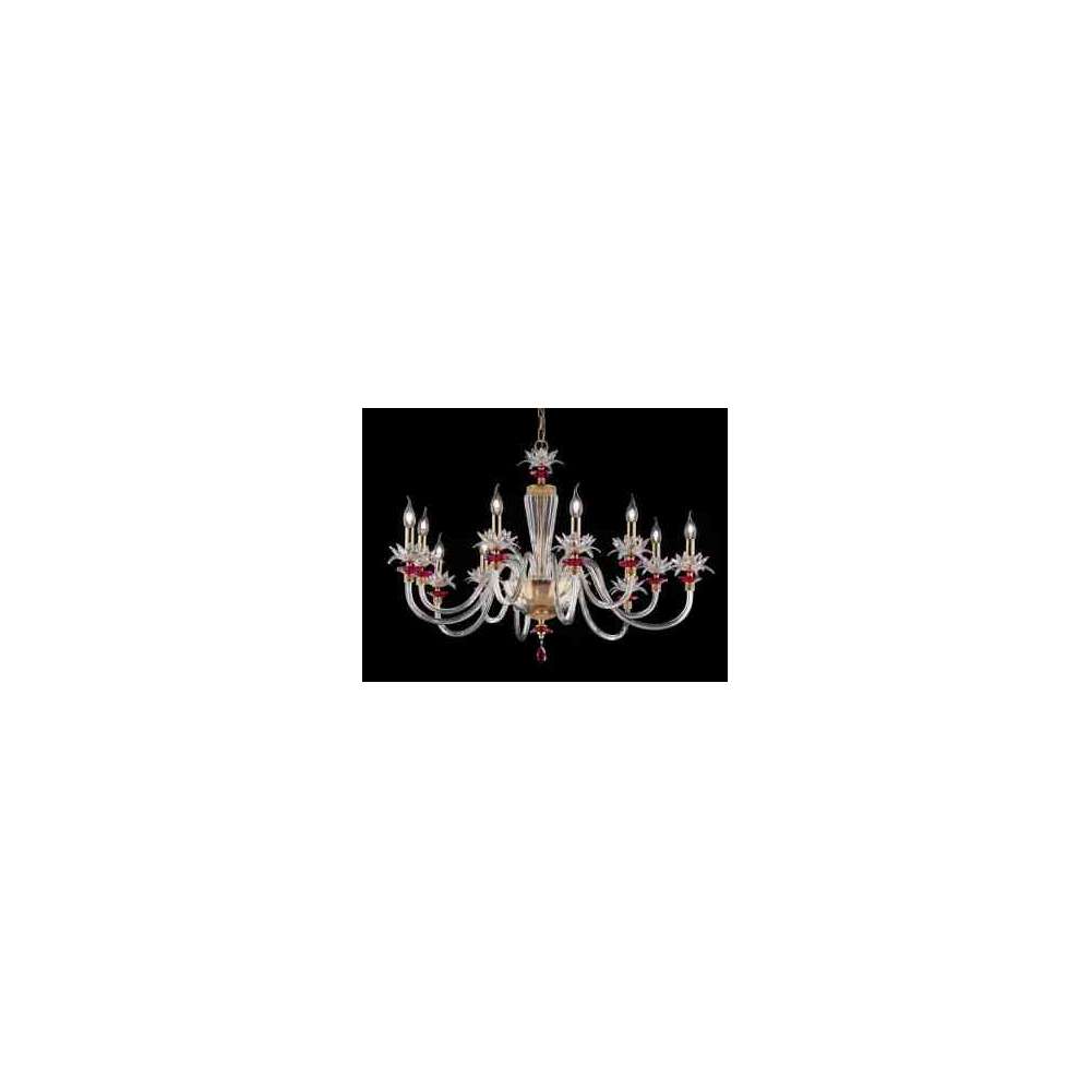 Wykończenie : lśniące złoto, satynowy chrom, czarny Nichel i satynowe złoto. Inne wykończenia na zamówienie. Kolor : korpus centralny, ramiona, filiżanka i kryształowy kwiat są w kolorze transparentnym. Bbeche w kolorze rubinowym, w kolorze zielonym, w kolorze bursztynowym. Inne kolory na zamówienie. Szczegóły : korpus centralny ze szkła dmuchanego, wykonany w Toskanii. Kubek wykonany w Wenecji. Kwiaty w szlifowanym krysztale. Elementy ozdobne z metalowego filigranu oraz ze srebrnymi spawami wykonujemy ręcznie według naszego rysunku. Ozdobiona zawieszką Swarovski®. Odcień 34/73 mod. Impero z bordową tkaniną pongè i bordową organzą. Inne abażury na zamówienie.Zapisz się do naszego newslettera i otrzymuj oferty specjalne i rabaty dla stałych i nowych klientów! Wystarczy, że podasz nam swój adres e-mail i nie przegapisz już żadnej oferty!
