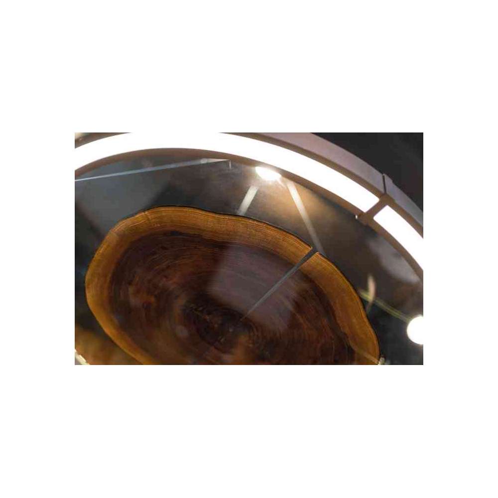 Lampa wisząca Glass&Wood o stalowej konstrukcji i brązowym wykończeniu. Użyte drewno: orzech Canaletto.