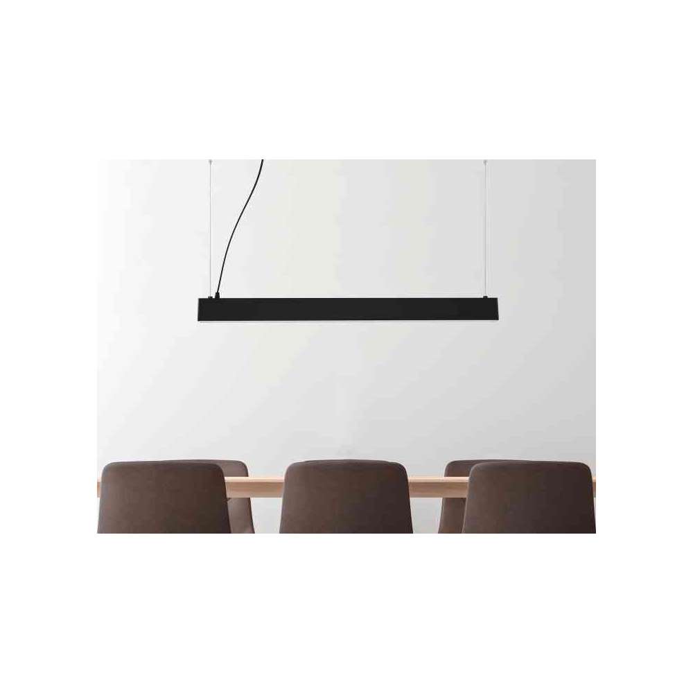 W tym modelu Thira technologia LED jest połączona z minimalistyczną konstrukcją z aluminium. Znajdująca się wewnątrz taśma LED oraz klosz z poliwęglanu generują szeroki i regularny strumień świetlny. Jego prostokątna bryła zaprojektowana z wyrafinowanymi liniami sprawia, że idealnie nadaje się do oświetlania dużych stołów. Neutralność kształtu jest idealna do wszystkich środowisk.