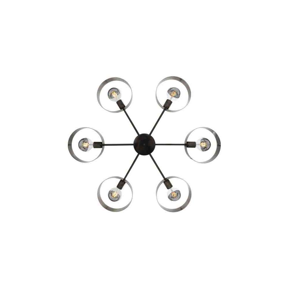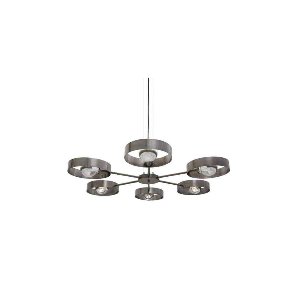 Przycisk FOSSA świecznik jest świecznik przemysłowych sześć ramion, które odchodzą od jej środka. Na końcu każdego ramienia znajduje się oprawka lampy i okrągły mosiężny pierścień. Zalecamy korzystanie z jednego z naszych lustro zwieńczone żarówki LED w tym sześć światła żyrandol (sprzedawany oddzielnie). Chrom lub złota lustro szczycie bańki odzwierciedla kolor otaczającym pierścień z mosiądzu.