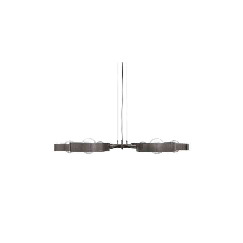 The FOSSA świecznik jest zawieszony za pomocą trzech pasm drutu trakcyjnej i dopasowanie sufit róży. Jest dostępny na zamówienie z mosiądzu antycznego, srebra antycznego, mosiądzu polerowanego i mosiądzu satynowego.