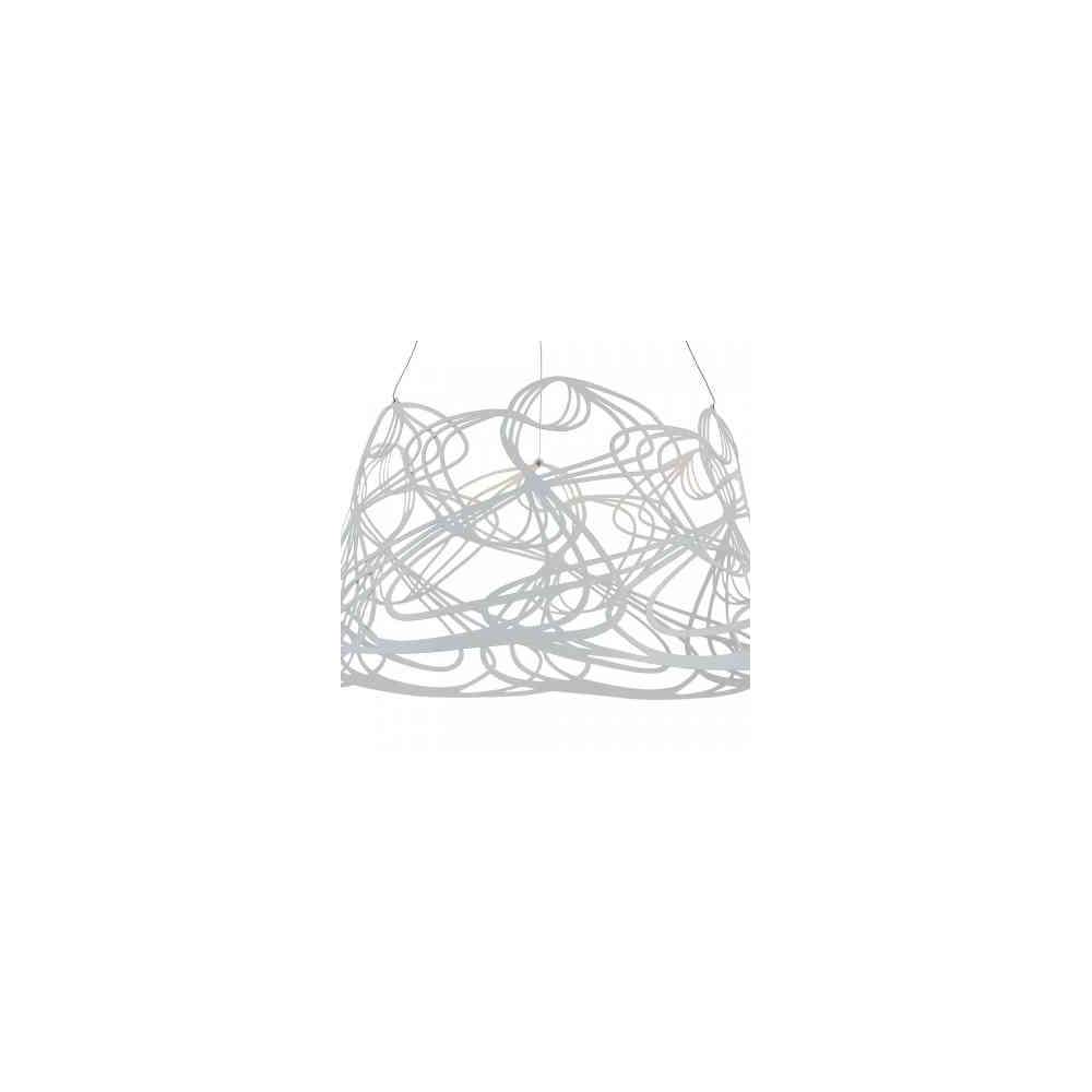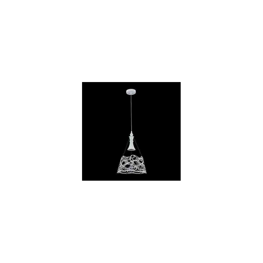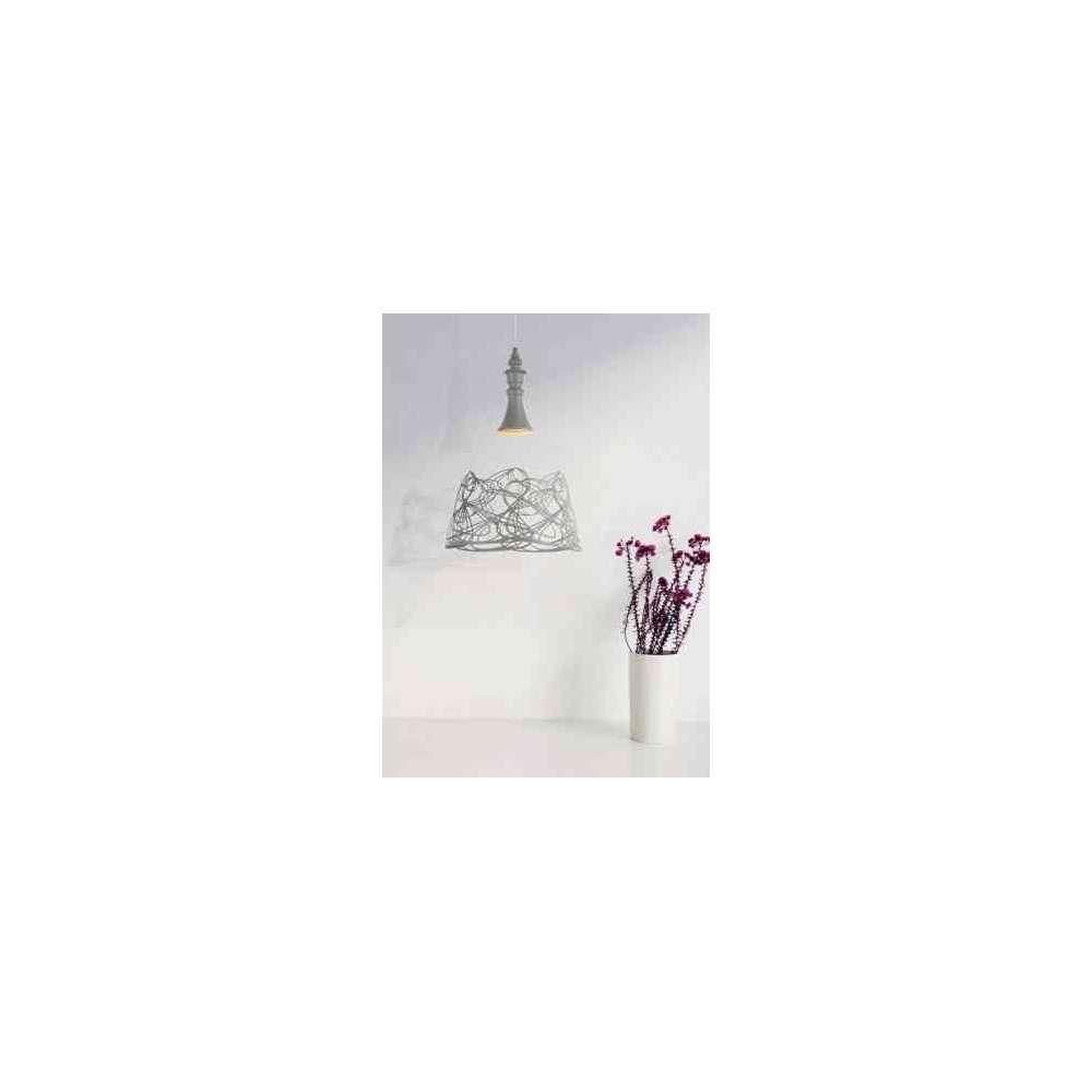 Metalowa rama malowana na biało i szaro. Niezwykły design klosza.