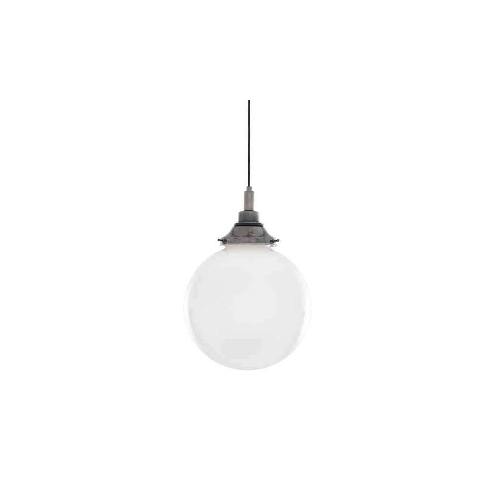 Lampa wisząca PELAGIA to szklana kula wisząca z kloszem z opalowego szkła 20, 25 lub 30 cm. Ta kula łazienkowa ma stopień ochrony IP44. Oznacza to, że można go bezpiecznie zainstalować w większości łazienek i na zewnątrz. Wisiorek PELAGIA ma prosty szklany klosz, który jest przymocowany do szczelnej mosiężnej galerii. Galeria dostępna jest na zamówienie w kolorze antycznego mosiądzu, antycznego srebra, mosiądzu polerowanego, mosiądzu satynowego oraz lakierowanej proszkowo czerni lub bieli matowej. Do każdej lampy wiszącej w kształcie kuli dostarczana jest dopasowana rozeta sufitowa. Jeden metr kabla w oplocie jest również standardowo dostarczany z zawieszką PELAGIA. Dłuższe długości są dostępne na życzenie.