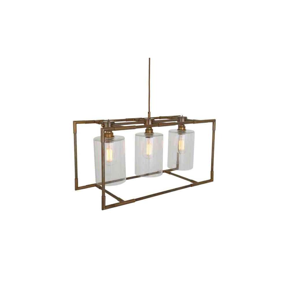 Żyrandol BLESSINGTON ma trójwymiarowy kształt pudełka, który otacza trzy cylindryczne szklane klosze. Zbudowany z mosiężnych rurek, ten przyciągający wzrok żyrandol doda klasycznego charakteru każdej przestrzeni. Trzy mosiężne oprawki są zawieszone w konstrukcji z mosiężną ramą 3D, z których każdy posiada przezroczysty szklany klosz. Przezroczyste szklane klosze eksponują dekoracyjne żarówki LED w stylu Edisona (sprzedawane osobno).