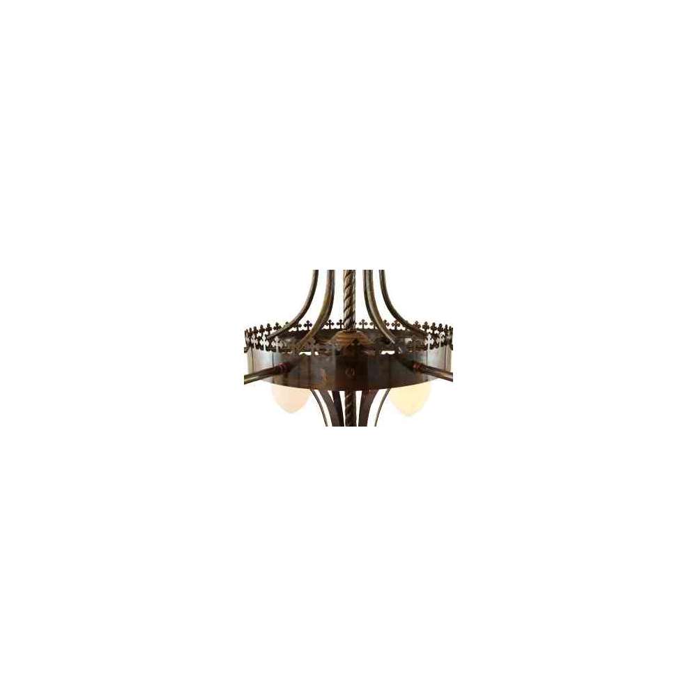 Żyrandol KILLARNEY to ozdobny, tradycyjny żyrandol idealnie nadający się do kościołów i wielkich hoteli. Ten żyrandol z litego mosiądzu ma cztery ramiona i pięć świateł z kloszami z opalowego szkła ananasowego. Jest również dostępny z sześcioma ramionami i siedmioma światłami. Żyrandol KILLARNEY jest zawieszony na pięciu mosiężnych prętach uformowanych jak liny. Każda mosiężna lina jest przymocowana do okrągłej ramy z krzyżami starannie uformowanymi na jej górnej powierzchni.