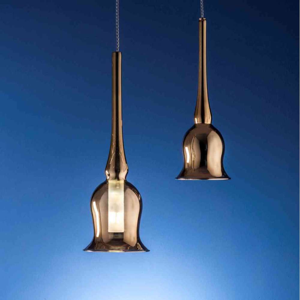 Lumiera XL x6 Bucaneve to lampa wisząca z 6 światłami. 6 korpusów oświetleniowych z przewodem zasilającym o długości 200 cm zawieszonych jest na rozecie o średnicy 32 cm. Rozeta jest dostępna w wersji lustrzanej lub białej ze stali nierdzewnej. Bucaneve są wykonane z przezroczystego, matowego lub różowego złota dmuchanego i są dostępne w trzech różnych kształtach. Działają z żarówkami LED, które nie są dołączone.Odbiorca: :