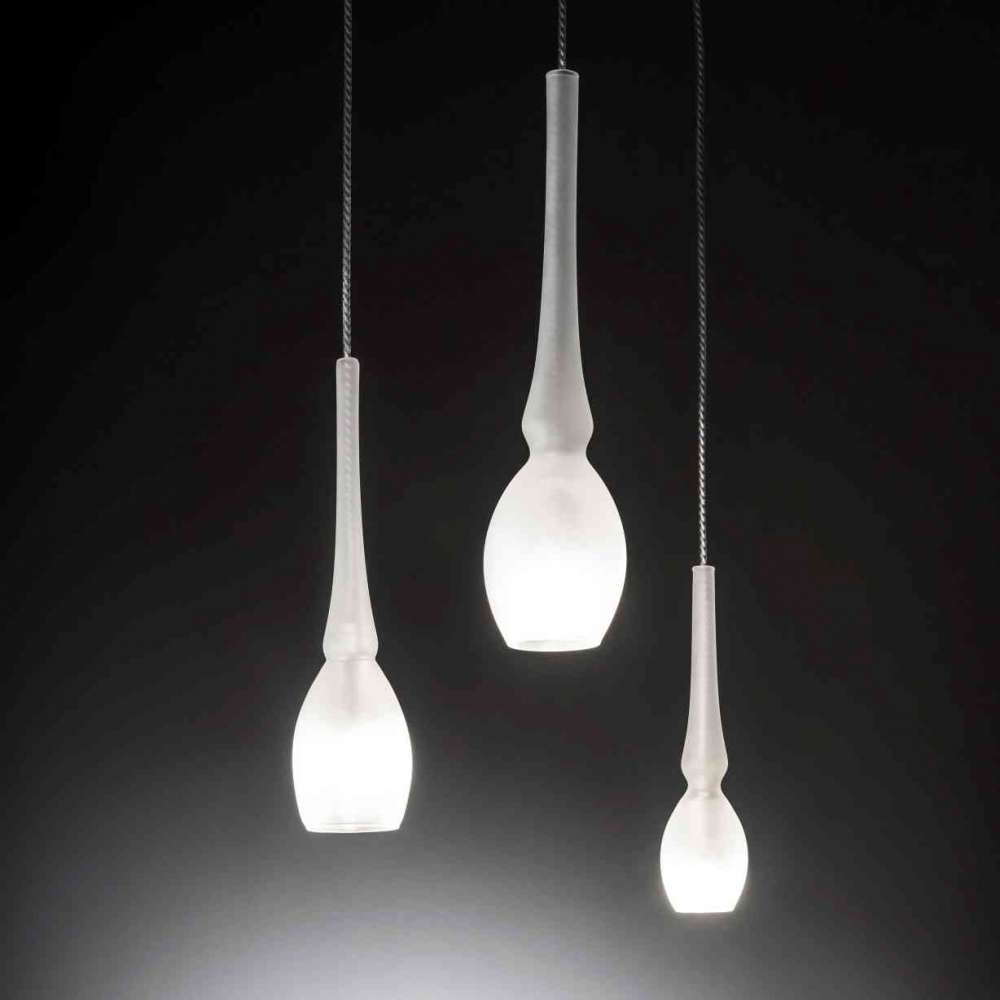 Lumiera XL x6 Bucaneve to lampa wisząca z 6 światłami. 6 korpusów oświetleniowych z przewodem zasilającym o długości 200 cm zawieszonych jest na rozecie o średnicy 32 cm. Rozeta jest dostępna w wersji lustrzanej lub białej ze stali nierdzewnej. Bucaneve są wykonane z przezroczystego, matowego lub różowego złota dmuchanego i są dostępne w trzech różnych kształtach. Działają z żarówkami LED, które nie są dołączone.