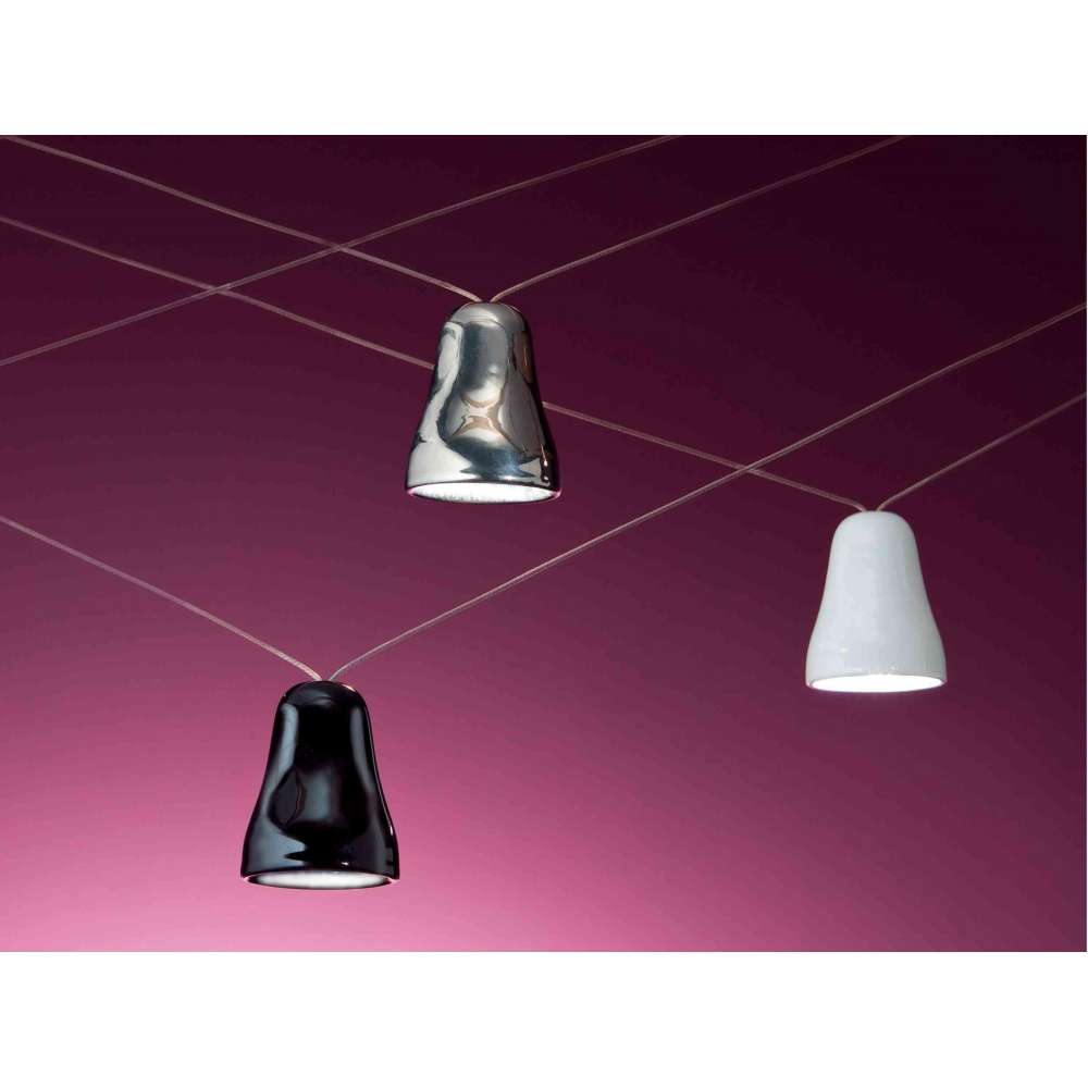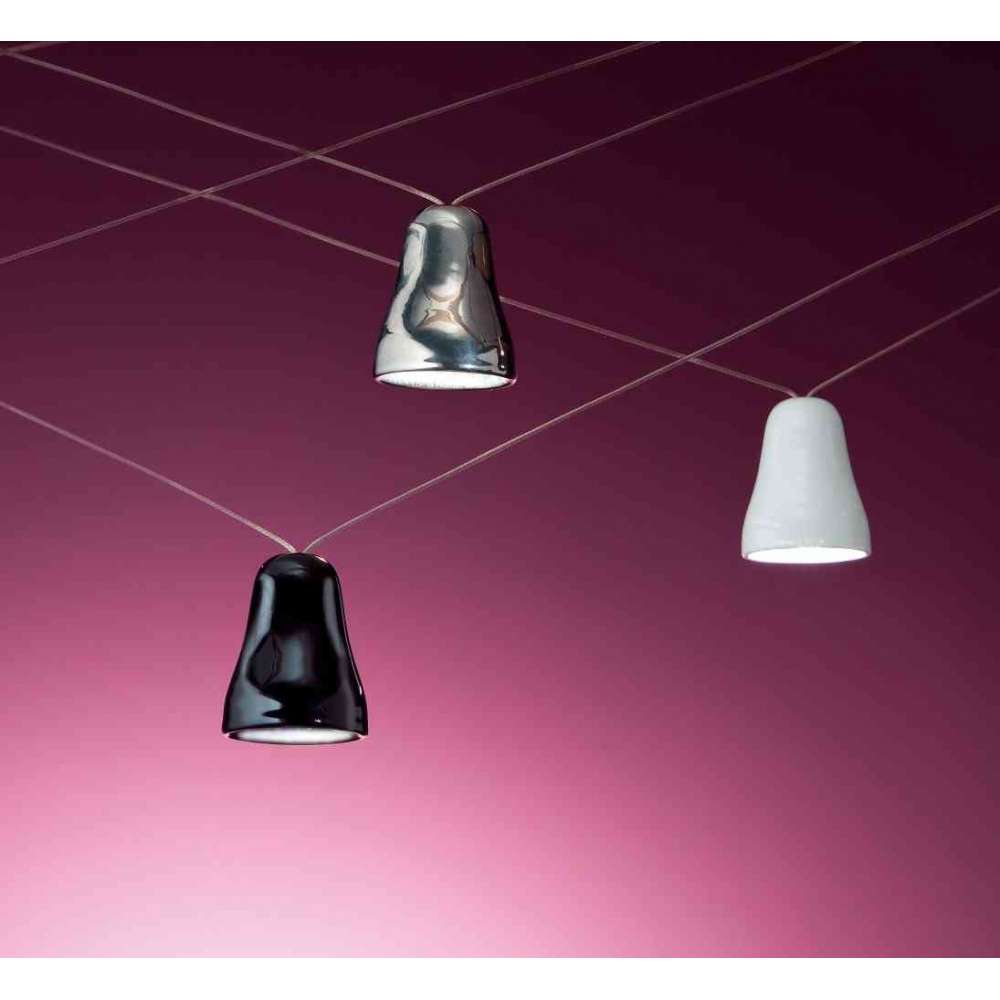 Campanella to lampa dająca bezpośrednie światło skierowane w dół żarówką dichroiczną o średnim kącie. Współpracuje z żarówkami LED 12V max 35W 36. Służy do oświetlenia ogólnego lub na stołach jadalnych, miejscach pracy i czytania, gdy źródło światła musi być ukryte. Wykonany jest ręcznie z ceramiki i jest dostępny w platynowym metalicznym polerowaniu oraz w czarnej lub białej błyszczącej emalii.