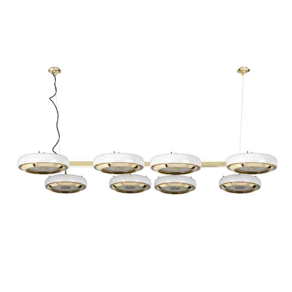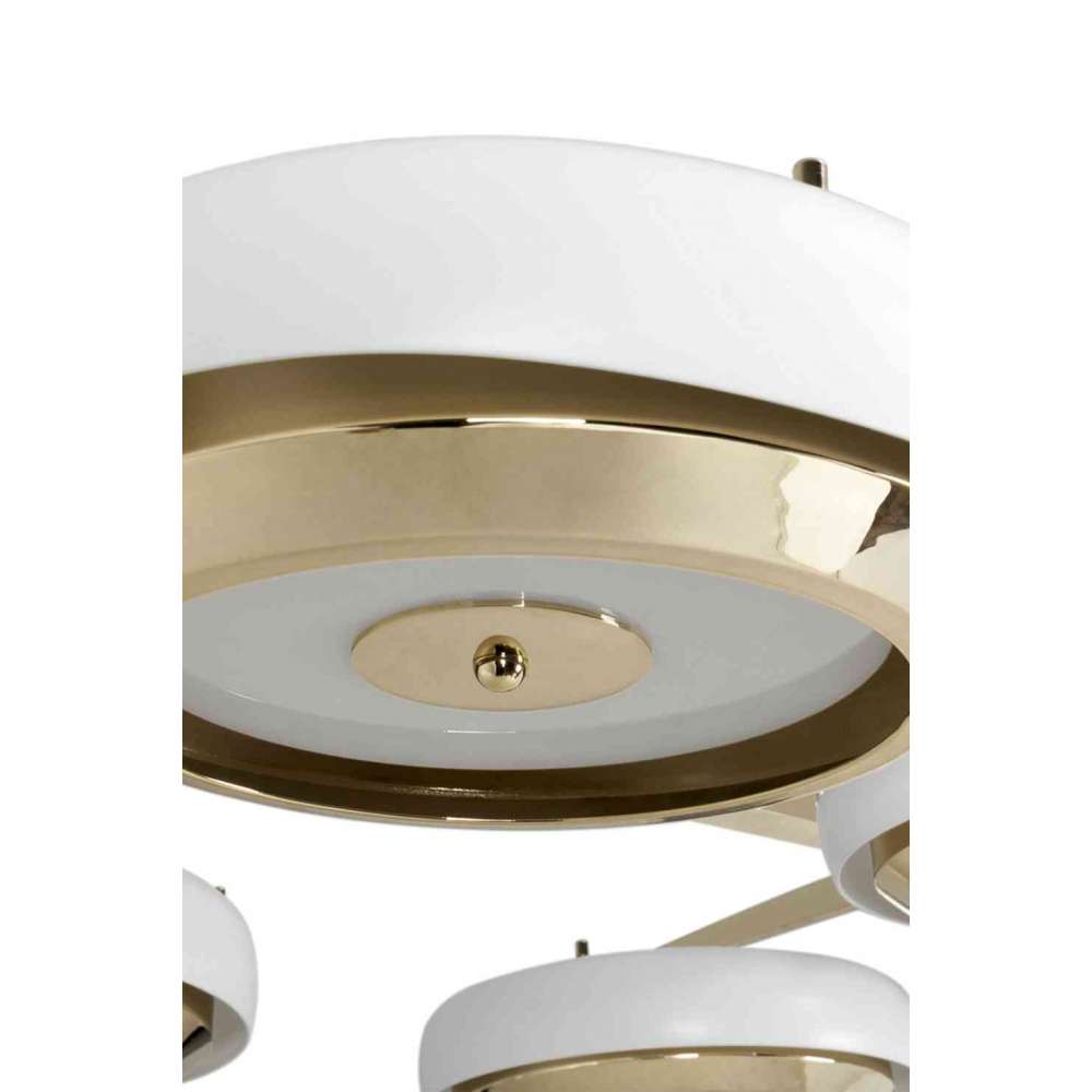 Ręcznie wykonany z polerowanego mosiądzu i matowej bieli, miękkie światło z 6 ramion tego środka. Nowoczesna, wieczna oprawa oświetleniowa ma wszystkie unikalne detale, aby przekształcić każdy projekt i stworzyć idealny nastrój, rzucając światło, kiedy tylko potrzebujesz.