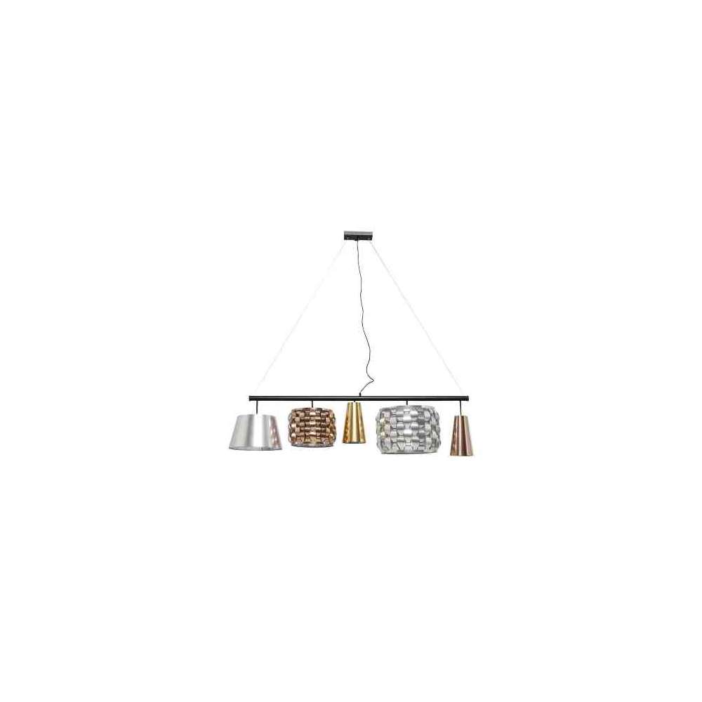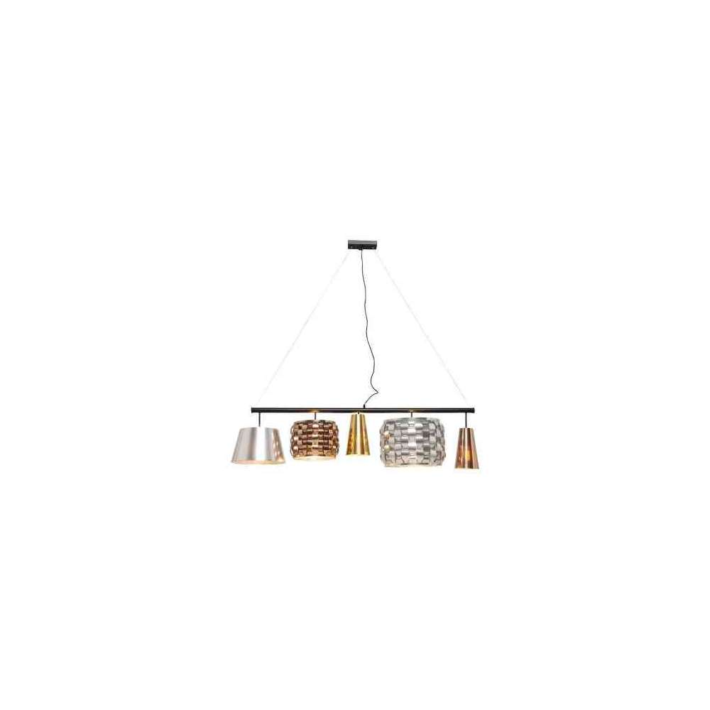 Połączenie lamp w harmonijnej jedności – Pięć różnych kloszy zostało tutaj zestawionych przez naszych projektantów w jedną stylową całość. Parecchi łączypięć pojedynczych lamp, tworząc zaskakująco estetyczną designerską lampę. Ten zachęcająco szeroki obiekt oświetleniowy oświetli również ozdobnie bogato zastawiony stół. Pomysłowo połączona lampa doskonale harmonizuje ze stołem z litego drewna, tworząc domową atmosferę podczas stylowej jadalni.