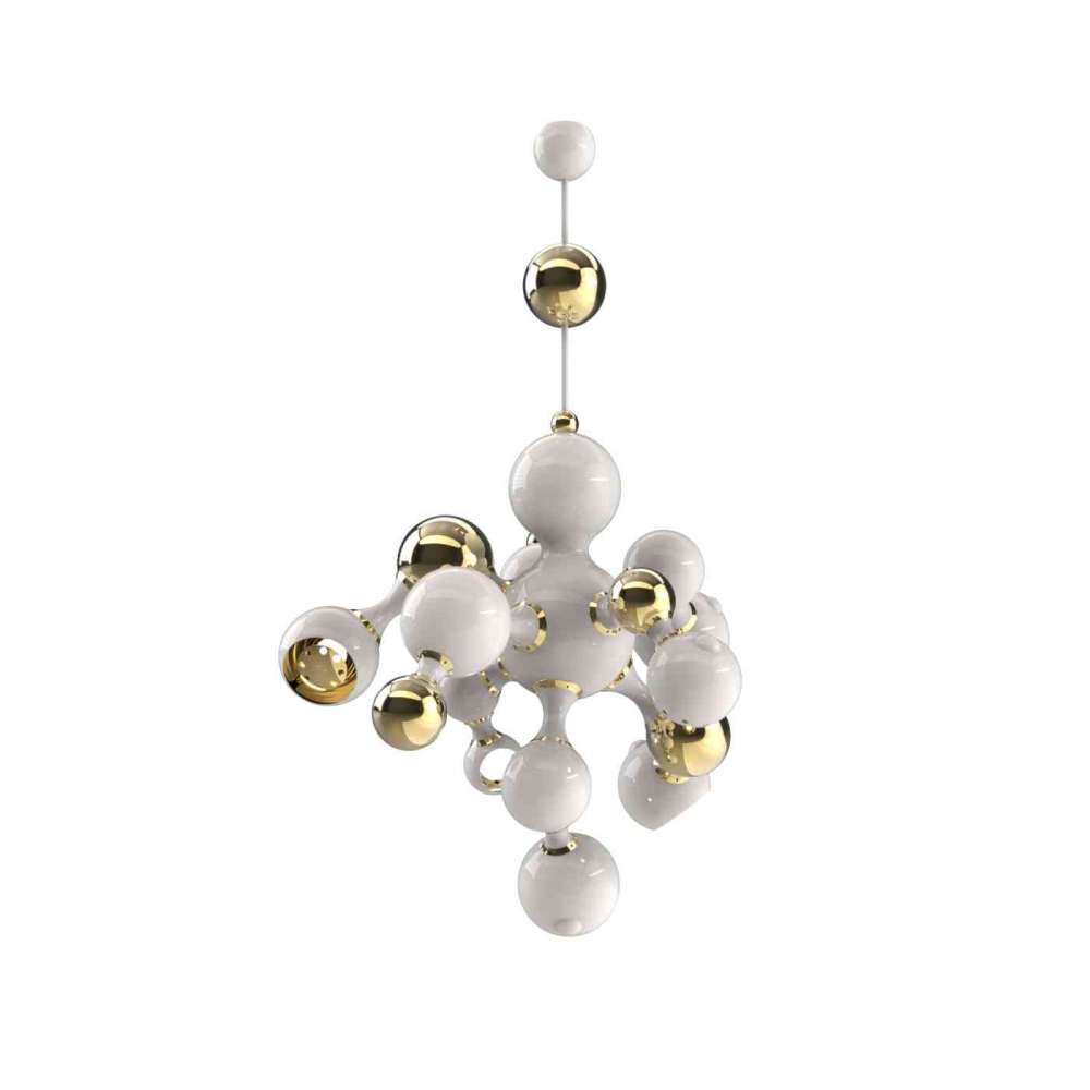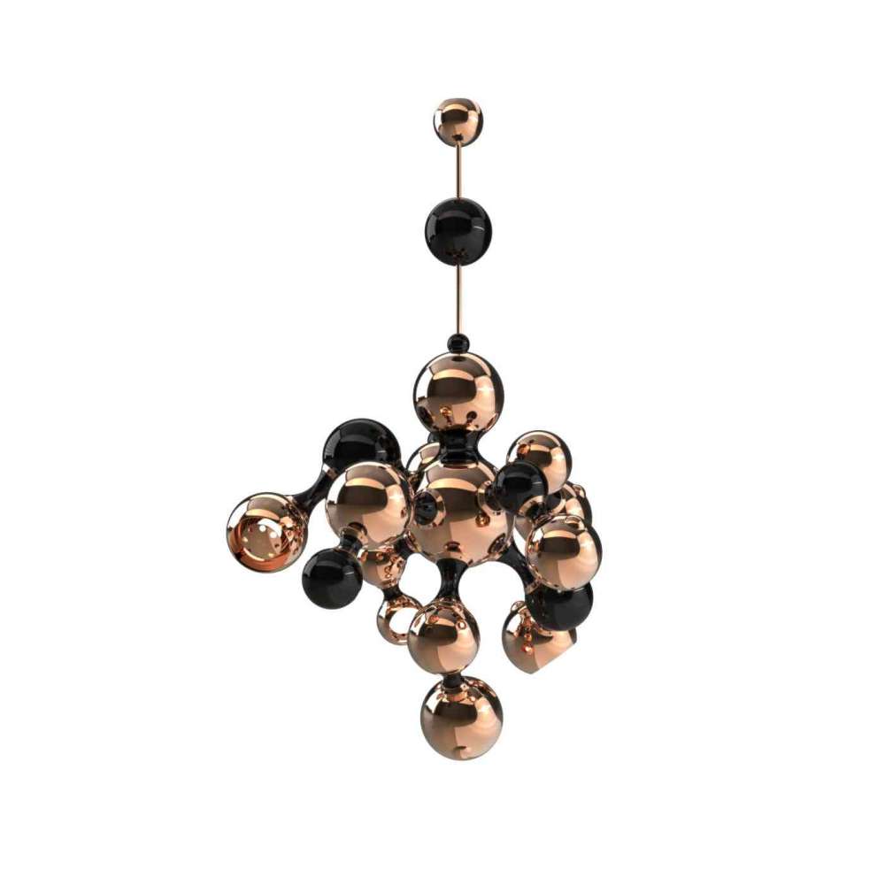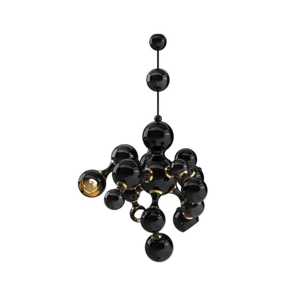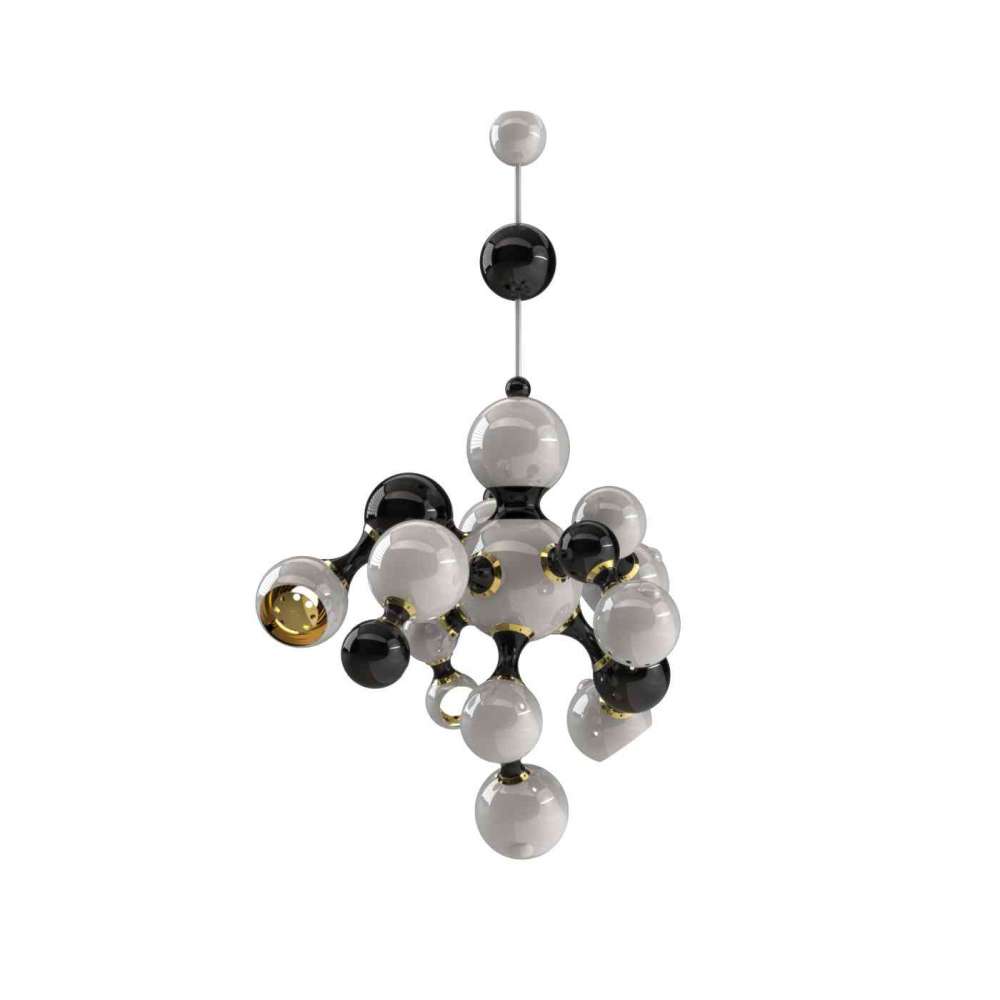 Lampa wisząca Atomic, współczesny potomek oświetlenia sferycznego w stylu retro, jest trafną interpretacją projektu epoki atomowej. Zestaw błyszczących, czarnych i pozłacanych, okrągłych odcieni, dopasowanych asymetryczną kompozycją, aby uwydatnić niekonwencjonalne formy molekularne. Ponieważ każdy odcień wywołuje przerażający efekt, idealnie nadaje się do umieszczenia w nowoczesnym salonie, aby zaskoczyć swoich gości, jak również w nowoczesnym holu. Zapierający dech w piersiach design inspirowany dziedzictwem lat 50-tych. MATERIAŁY. Korpus: Mosiądz i aluminium STANDARDOWE WYKOŃCZENIE: Korpus: Czarny błyszczący i pozłacany WAGA: Ok. 25 kg | 55,1 funta ŻARÓWKI: żarówki halogenowe 6x60 W G9 (w zestawie)