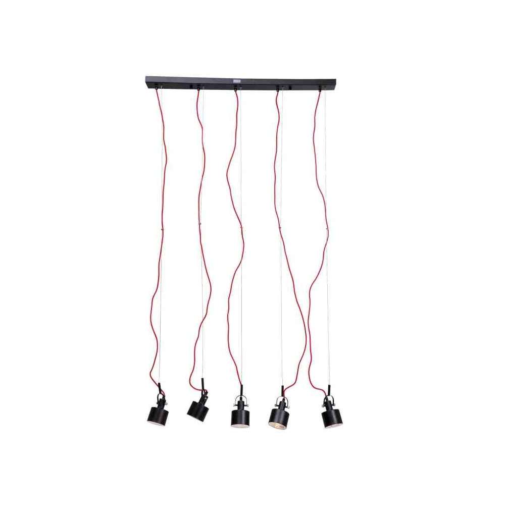 Materiał: stal, drut tekstylny czerwony, 5x E14, max. 40W, 230V, 50/60Hz