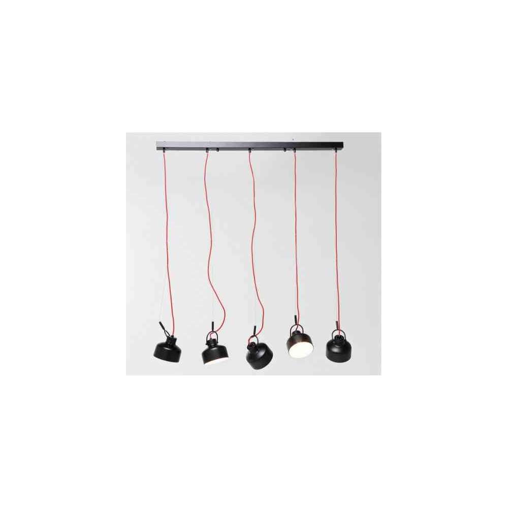 Ekstrawagancka lampa wisząca w stylu Bauhaus - Dzięki tej wspaniałej lampie wiszącej pięć odcieni na czerwonych tekstylnych kablach łączy się w imponującą całość! Klosze z błyszczącego, matowego czarnego żelaza można obracać i skupiać światło w dowolnym miejscu. Czerwone przewody tekstylne nadają lampie wiszącej najlepszy nowoczesny styl życia i tworzą żywy kontrast kolorów. Fabbrica Dining tworzy wyjątkową atmosferę wyposażenia w stylu Bauhaus! Część naszego świata trendów Fashion Rebels: promieniuje duchem radykalnego buntu i swobodnej luzu. Konwencjonalny jest 'out' - z naszym światem trendów Fashion Rebels przełamujemy bariery konwencji. Idealny dla wszystkich, którzy odrzucają dogmaty i normy. klasa energetyczna: AE