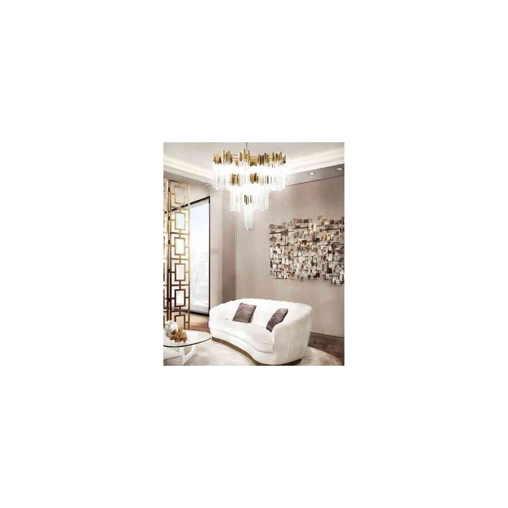 Żyrandol Burj inspirowany jest jednym z najpiękniejszych hoteli na świecie, Burj Al Arab. Podobnie jak hotel, to arcydzieło jest symbolem nowoczesności i luksusu w połączeniu. To także mocna, dekoracyjna konstrukcja, w całości wykonana z pozłacanego mosiądzu, z delikatnie ręcznie wykonanymi szklanymi rurkami.