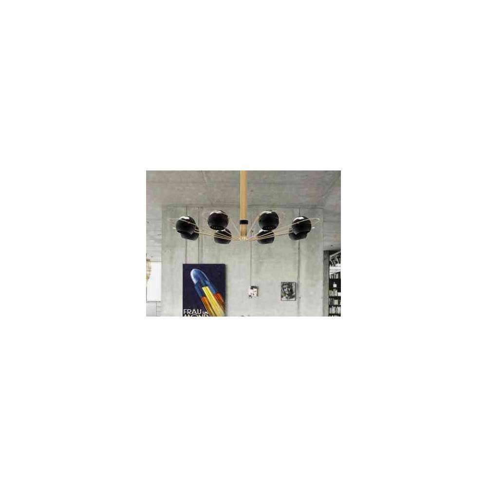 NEIL - Najnowsza lampa wisząca firmy Deligthfull, z okrągłymi łukami i sferycznymi dyfuzorami, przywodzi na myśl złote lata eksploracji kosmosu w latach 60-tych. Posiada 8 ramion z regulowanymi światłami, tworząc uniwersalny element. Daje również możliwość oświetlenia tylko 4 z 8 dyfuzorów. Klosz: Kolor lakierowany RAL. Rama: chromowana lub pozłacana. WYMIARY: Wysokość: możliwość dostosowania. Średnica: 120 cm | 47,24''. LAMPY: Żarówki E27 x 8.