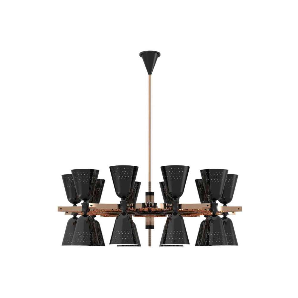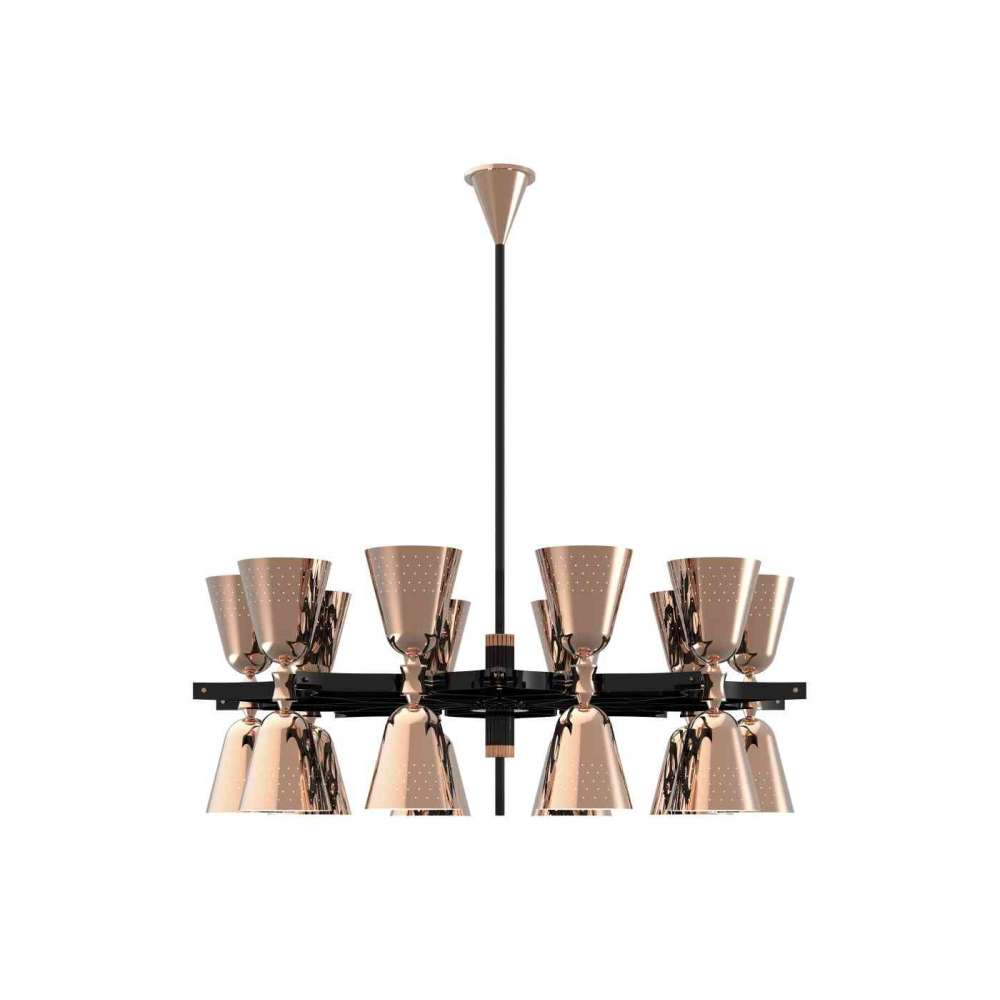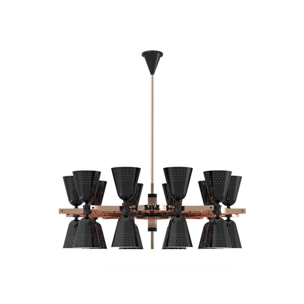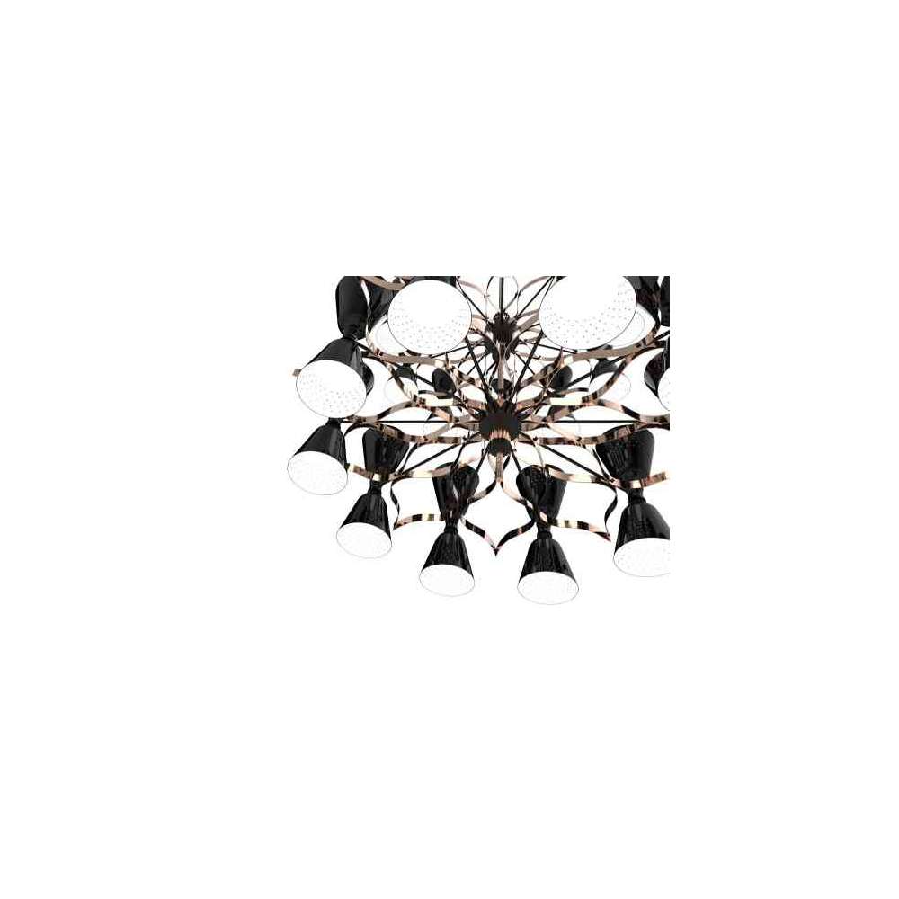 Jeśli myślisz, że widziałeś wszystko, co dotyczy oświetlenia, to całkowicie się mylisz: zawieszenie Charles pokazało, że nie ma granic w projektowaniu oświetlenia. Jego ręcznie pokryta miedzią obudowa zmieni każdy salon, jadalnię lub hol w najbardziej królewskie otoczenie, jakie kiedykolwiek sobie wyobrażałeś. 20 błyszczących czarnych kloszy skupi się na suficie lub podłodze, zapewniając nieodparte miękkie oświetlenie.