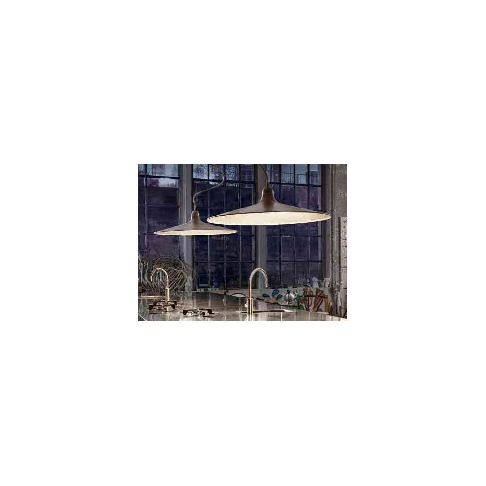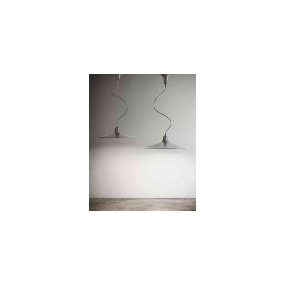 Seria trzech zawieszeń o różnych rozmiarach, które odpowiadają tej samej koncepcji: oświetlając przestrzeń w sposób funkcjonalny i wykonawczy, wzmacniając ją. Idealny do biur, miejsc pracy, obszarów wspólnych zarówno do użytku komercyjnego, jak i prywatnego. Wykończenie z antycznego aluminium łączy w sobie funkcję i emocje. Zwieszaki wyposażone są w pojedynczy metalowy kabel ze stali nierdzewnej, który umożliwia regulację wysokości w momencie montażu. Elastyczna tuba centralna pozwala na lekki obrót odbłyśnika w pozycji również innej niż standardowa.