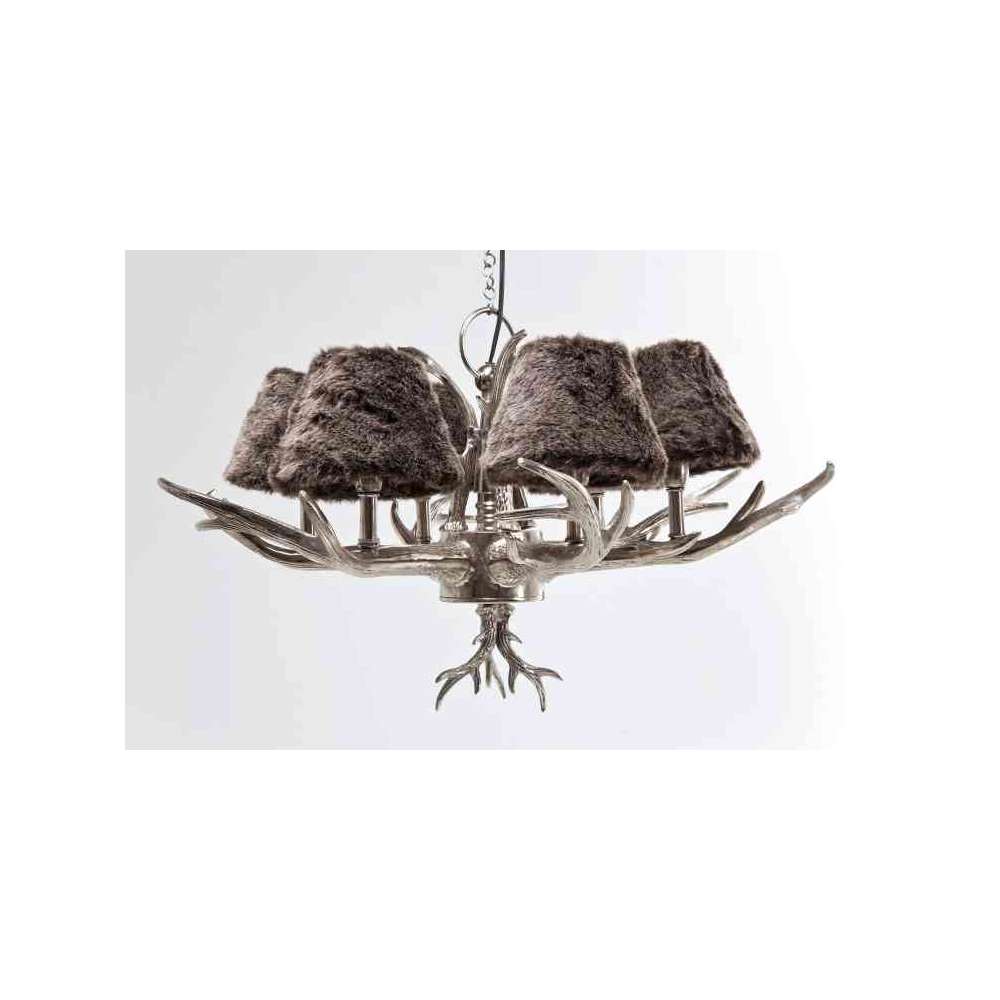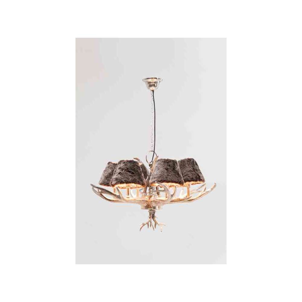 Ekstrawagancka lampa wisząca stworzona dla myśliwych - Tally Ho! Do tej lampy wiszącej nie potrzebujesz pozwolenia na polowanie – wystarczy zamiłowanie do zakupów i zamiłowanie do ekstrawaganckich dodatków do wyposażenia wnętrz. Lampa wisząca Huntsman ma korpus typu żyrandol inspirowany porożem. Powyżej znajduje się sześć kloszy przypominających futerko, które nadają lampie rustykalnego charakteru. Wyjątkowy obiekt oświetleniowy dla wszystkich, którzy cenią sobie ekstrawaganckie, ale domowe umeblowanie. Dostępny również w innych wersjach. klasa energetyczna: AE Materiał: stal niklowana, aluminium, sztuczne futro poliestrowe, 6x E14, max. 25W, 230V, 50/60Hz (wył.)Zapisz się do naszego newslettera i otrzymuj oferty specjalne i rabaty dla stałych i nowych klientów! Wystarczy, że podasz nam swój adres e-mail i nie przegapisz już żadnej oferty!