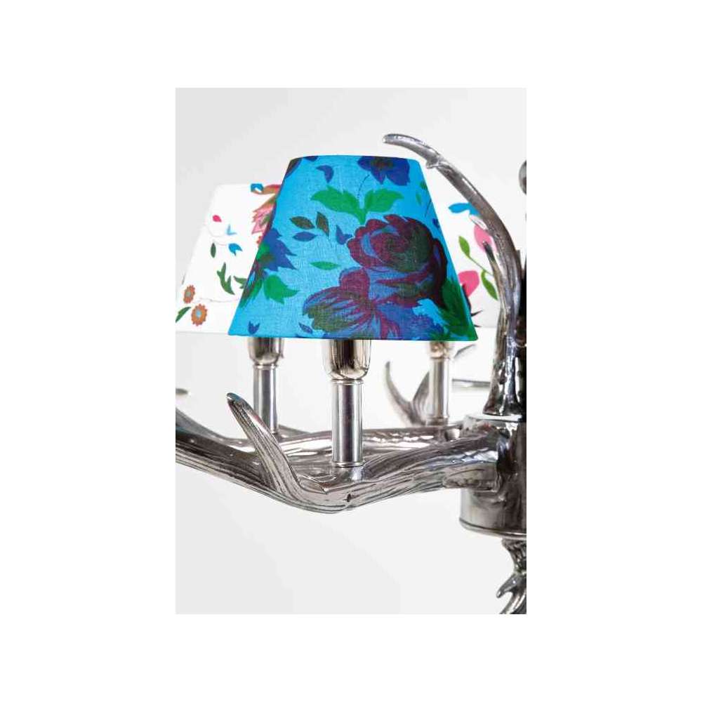 Stylowa lampa z porożem z kwiecistą wstawką – alpejski szyk spotyka się z designem. To najlepszy sposób na podsumowanie tej niezwykłej lampy sufitowej. Ale ma też więcej do zaoferowania. Zwiedzający z fascynacją przyjrzą się temu ekstrawaganckiemu obiektowi projektowemu i pomyślą: „Wow, co to u licha?” Ale wtedy jest już za późno. Oni już mają błąd. Kontrast sprawia, że ta nowoczesna wersja żyrandola jest naprawdę uroczym elementem wyposażenia i ma gwarancję dobrego samopoczucia. Poroże są odlewane z aluminium, a następnie zwieńczone kolorowymi kloszami z tkaniny. Każdy odcień jest wyjątkowy i dlatego może nieznacznie różnić się od przedstawionego na ilustracji. klasa energetyczna: AE Materiał: stal niklowana, aluminium, bawełna, 6x E14, max. 25W, 230V, 50/60HzOdbiorca: :