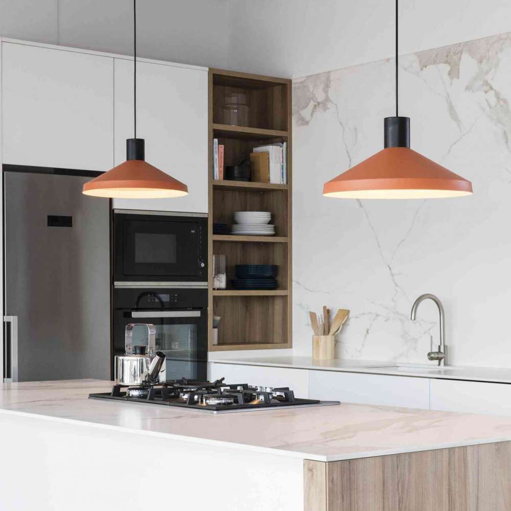 KOMBO to rodzina lamp wiszących stworzona przez firmę Nutcreatives. Seria ma różne rozmiary i wykończenia, które w górnej części mają czarną cylindryczną strukturę. Klosz tej lampy wykonany jest z metalu, ma minimalistyczny styl i bawi się geometrycznymi kształtami. Ma średnicę 40 cm.