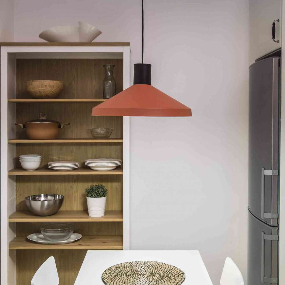 KOMBO to rodzina lamp wiszących stworzona przez Nutcreatives. Seria ma różne rozmiary i wykończenia, które w górnej części mają czarną cylindryczną strukturę. Klosz tej lampy wykonany jest z metalu, ma minimalistyczny styl i bawi się geometrycznymi kształtami. Ma średnicę 40 cm. Dane techniczne Żarówka: 1XE27 MAX. W zestawie żarówka LED 15W: Nie Napięcie: 100-240V Klasa: IIOdbiorca: :