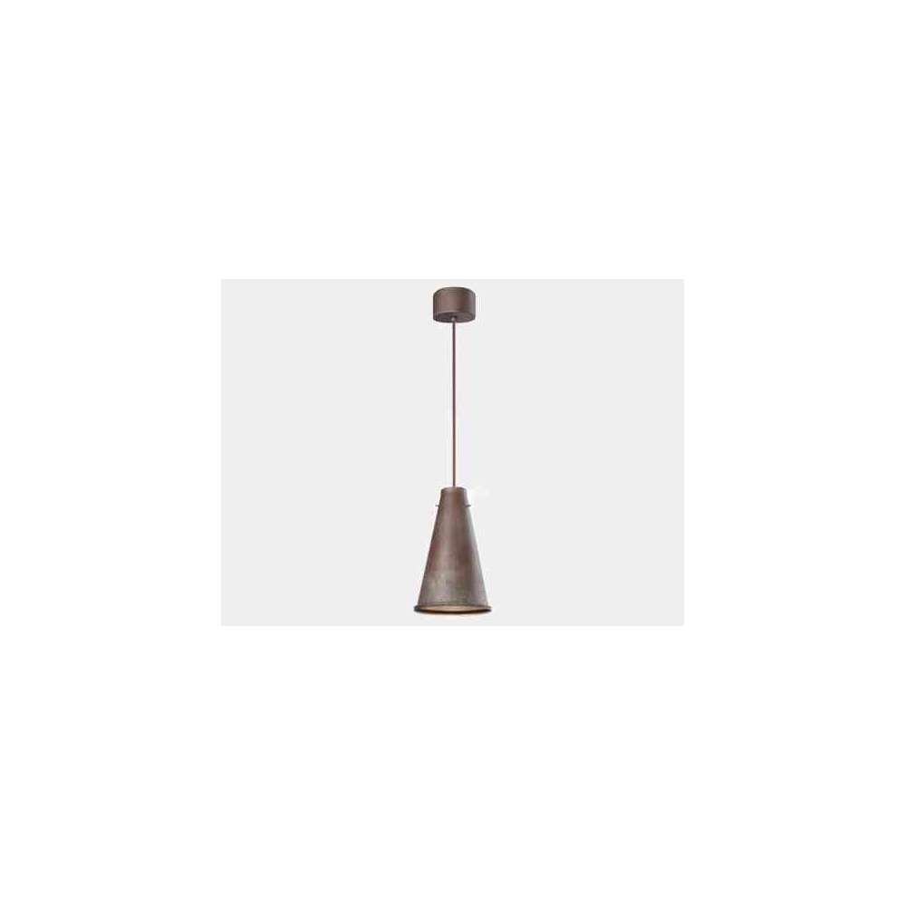 KHONUS 256.03.FF to żelazna lampa wisząca. Charakterystyka elektryczna 1xMax 77W E27 240V A++/E IP20 Klasa I Wykończenie IRON Materiał IRON Proste i liniowe kształty inspirują funkcjonalne wzornictwo. Oto Khonus: seria stożkowych lamp wykonanych z antycznego żelaza, zdolnych do odbijania światła zarówno w dół, jak i w górę, całkowicie oświetlając otoczenie. Dostępne w trzech różnych rozmiarach, mogą być aranżowane pojedynczo lub razem podkreślając ich istotę.Odbiorca: :