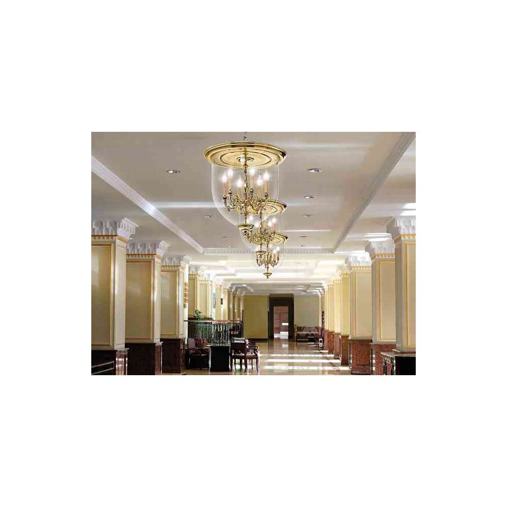 JOLANDA to wisiorek z cieniowanego mosiądzu z przezroczystym szkłem autorstwa Possoni Illuminazione.