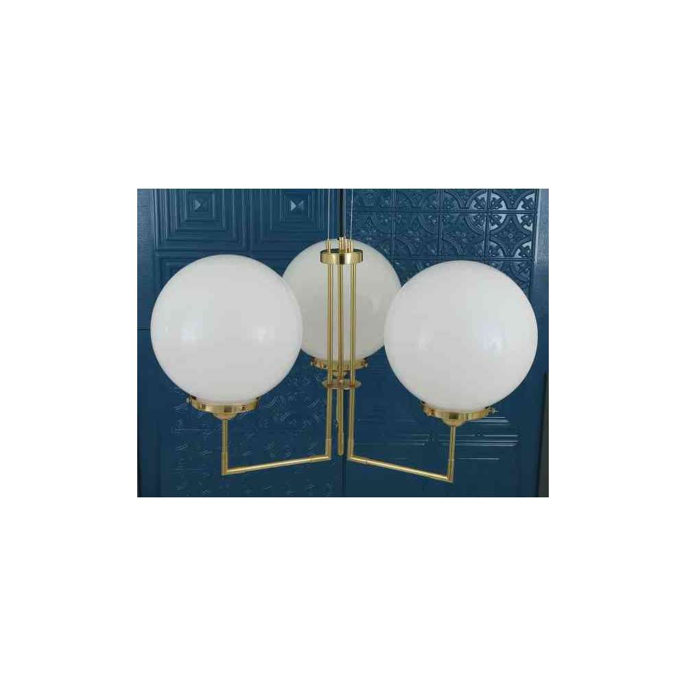 Podobnie jak żyrandol Nairobi, nowoczesny żyrandol BELLAVARY ma trzy kątowe ramiona wywodzące się z wiszącej rozety sufitowej wspartej na kablu nośnym. Każde ramię wystaje najpierw poziomo, a następnie pionowo pod kątem prostym, aby podtrzymywać szklany klosz lampy. Jego nowoczesna struktura kontrastuje z kulistymi, opalizującymi szklanymi kloszami, które rzucają miękkie światło na dużą powierzchnię. Żyrandol BELLAVARY jest wspaniałym elementem do przedpokoju lub wielkiej jadalni. Jest dostępny z mosiądzu polerowanego, mosiądzu satynowego, mosiądzu antycznego i srebra antycznego. Żarówki są sprzedawane oddzielnie.