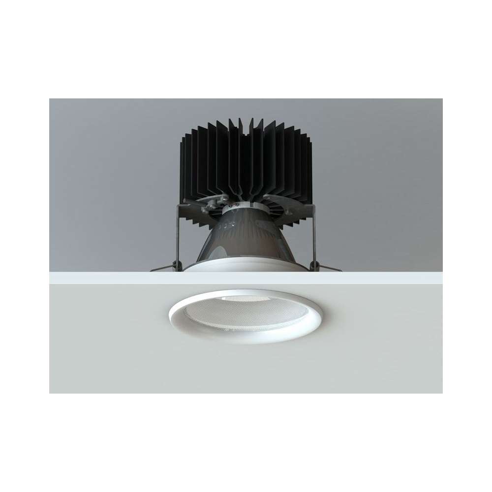 opalizowany poliwęglan lub mikropryzmatyczny klosz o niskiej luminancji. Zintegrowane źródło LED Chip On Board. Korpus i układ optyczny z malowanego aluminium. Odbłyśnik z powłoką z czystego aluminium 99,99%.