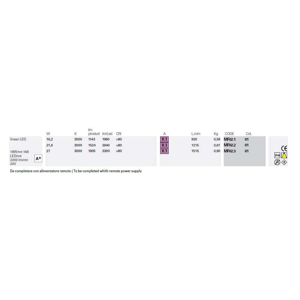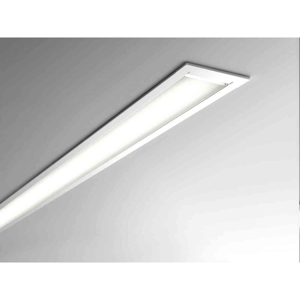 Seria opraw do montażu na suficie, wpuszczania lub wpuszczania bez przycięcia na płaskich powierzchniach lub do wbudowania bez przycięcia pod kątem zewnętrznym i wewnętrznym. Bezpośrednia rozproszona emisja światła. Liniowe źródła LED, do uzupełnienia zdalnym sterownikiem 24Vdc. Korpus z wytłaczanego aluminium, lakierowany, w komplecie z mlecznobiałym kloszem z poliwęglanu. Boczne zaślepki systemu Light Proof. Stopień ochrony IP40 lub IP65.