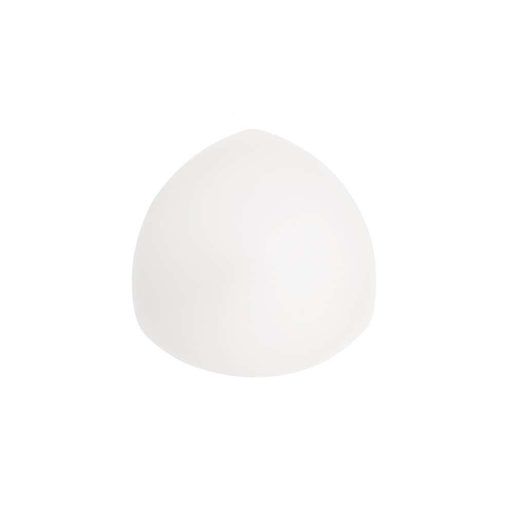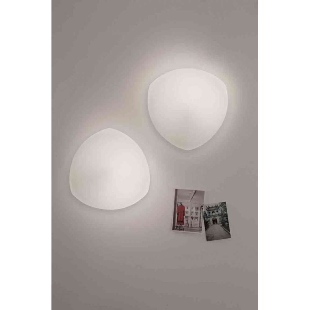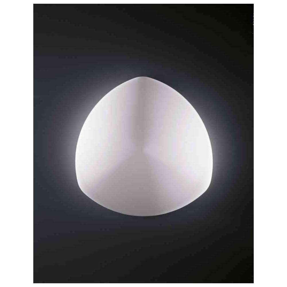 Lampa ścienna i sufitowa, z kloszem z dmuchanego szkła opalowego i podstawą z białego metalu pokrytego żywicą epoksydową.