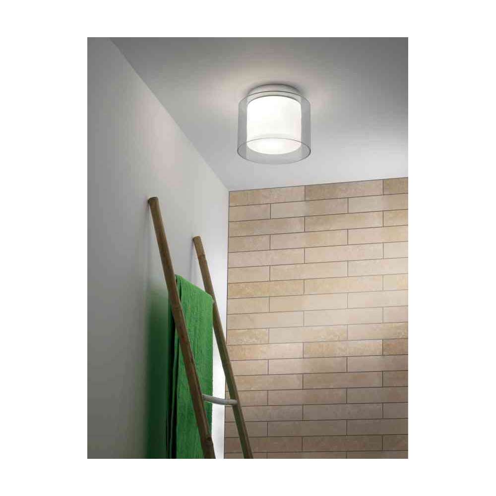 Arezzo to lampa sufitowa wykonana z mlecznego szkła. Polerowane chromowane wykończenie, klosz z białego mlecznego szkła, przezroczyste szkło zewnętrzne. Wykorzystuje jedną lampę 60W (maks.) E27 (bez) . Stopień ochrony IP44, odpowiedni do stref łazienkowych 2 i 3. Klasa II, podwójna izolacja.Odbiorca: :