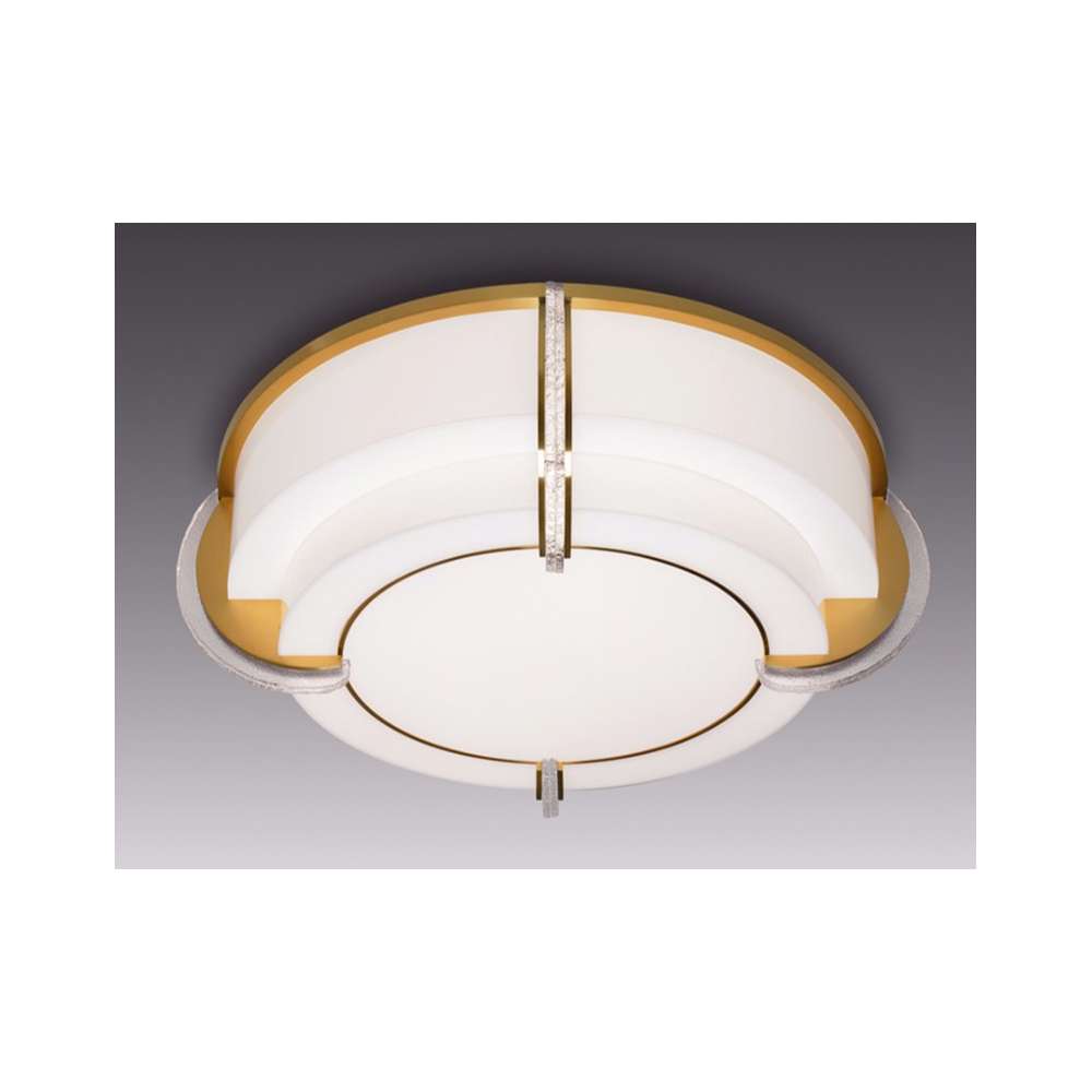727 - Szklana lampa sufitowa ze światłem bezpośrednim. Ta wyrafinowana kreacja oparta jest na przeciwstawieniu emaliowanego szkła optycznego i oszlifowanego „kryształu” osadzonego w blaszkach z brązu. Tę dwupoziomową lampę można zawiesić na trzech prętach. Dostępne są różne wykończenia i średnice. Współpracuje z każdym rodzajem żarówki.Odbiorca: :
