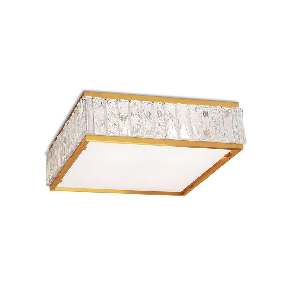 2060 - Szklana lampa sufitowa ze światłem bezpośrednim. Delikatność nierówno ułożonych szklanych płyt osadzonych między dwoma brązowymi mocowaniami sprawiła, że nazwano ją „naszyjnikiem królowej”. Te okrągłe lub kwadratowe lampy sufitowe nadają się zarówno do wnętrz klasycznych, jak i nowoczesnych. Dostępne są różne wykończenia i średnice. Działa z każdym typem żarówki.Odbiorca: :