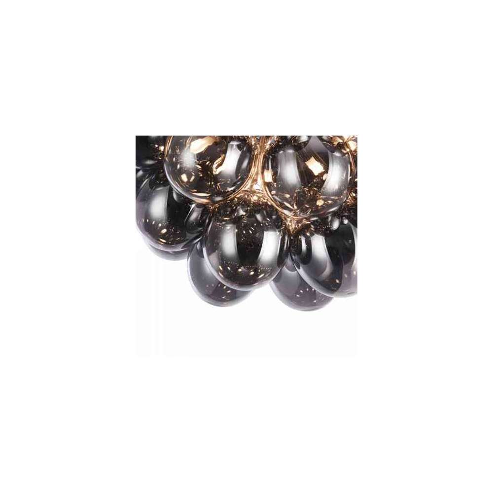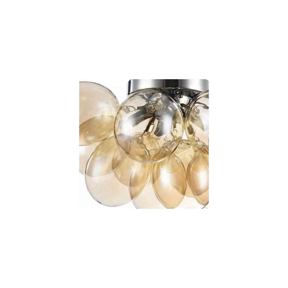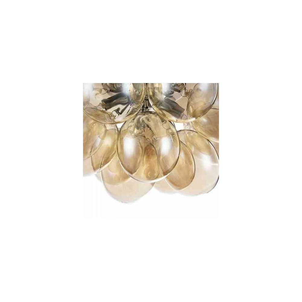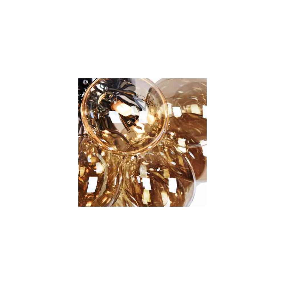 Metalowa rama. Klosze z przezroczystego szkła w dwóch kolorach: przydymionym i płowym.